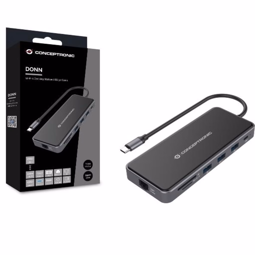 - Adattatore multiporta 12 in 1 da USB-C a HDMI/VGA/USB-C PD/USB-C dati/USB 3.0/USB - 2.0/SD/TF/GbE/AUX.