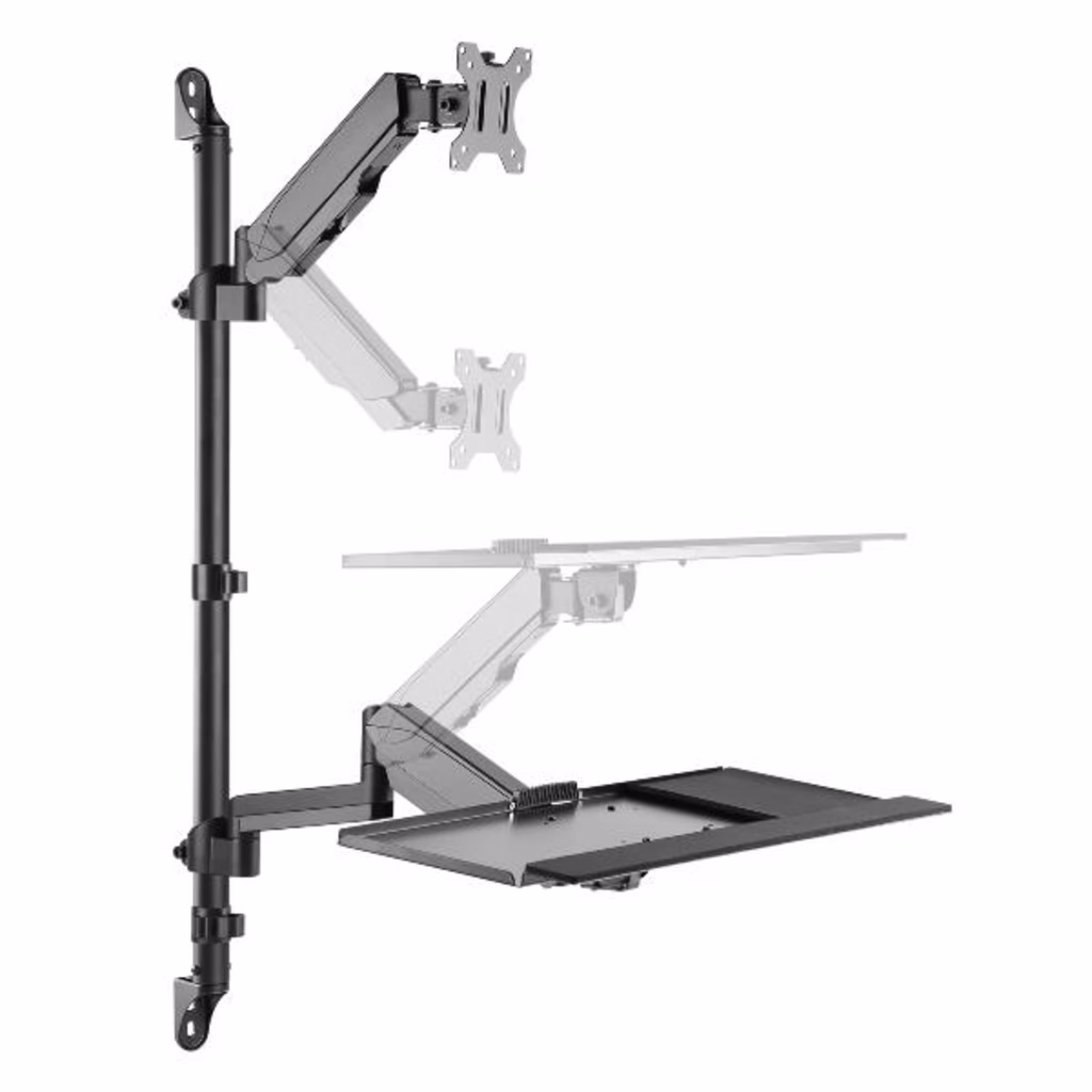 Caratterizzata da un design robusto e regolabile, la workstation a parete consente di posizionare il monitor all'altezza e all'angolazione desiderate per garantire comfort e produttività ottimali. Ciò è particolarmente utile in ambienti in cui lo spazio a terra è limitato, come uffici, studi o uffici domestici.