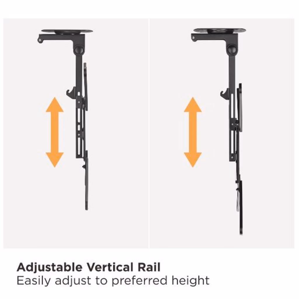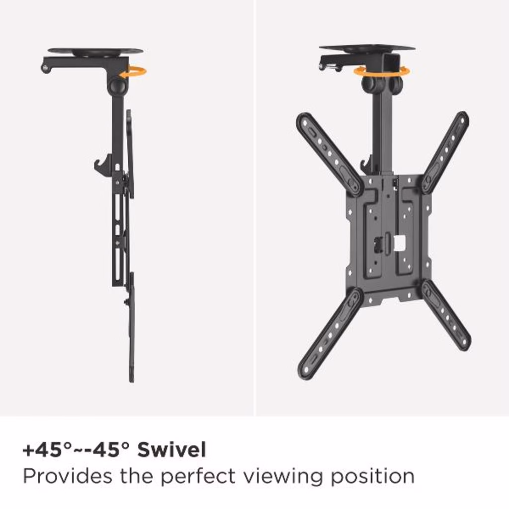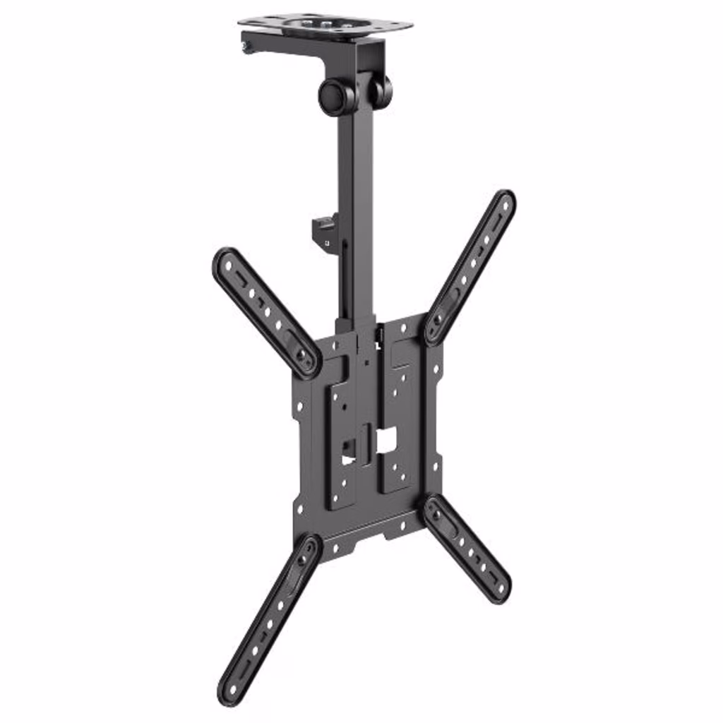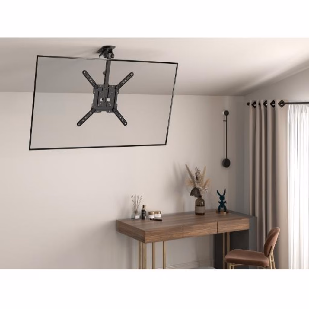 Caratterizzata da una struttura robusta e durevole, la staffa TV da soffitto garantisce stabilità e un supporto sicuro per il televisore. Il design regolabile consente di personalizzare l'angolo di visione, rendendolo adatto a una varietà di configurazioni di stanze. È particolarmente utile per gli spazi in cui il montaggio a parete non è pratico o desiderato.