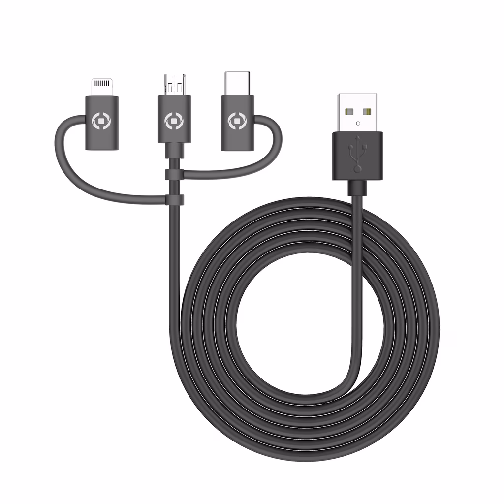 USB3IN1 è il cavo universale 3 in 1 con connettore principale Micro Usb ed adattatori Lightning (MFI) e USB-C.