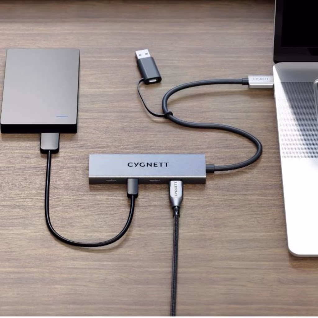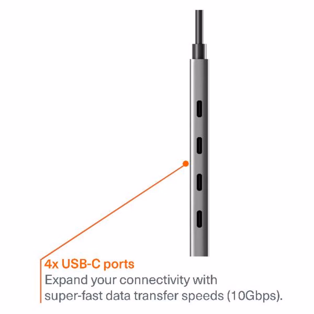 Aggiungi 4 porte USB-C al tuo dispositivo e collega facilmente tastiere, hard disk, cavi di ricarica e molti altri accessori.