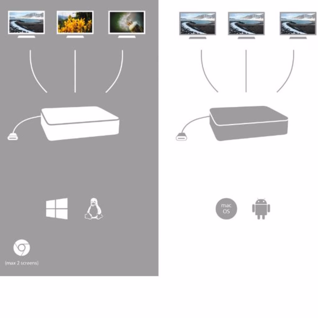 * macOS non supporta la tecnologia Multi Stream Transport (MST). Collegando due monitor alla stazione su macOS, entrambi i monitor mostreranno la stessa immagine.
