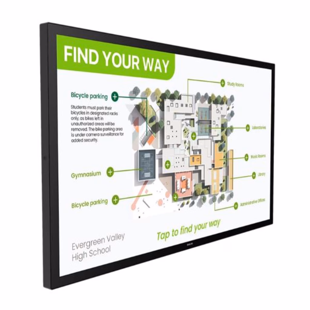 Sempre connesso: display multi-touch versatileCon una luminosità di 450 nits e un'autonomia 24 ore su 24, 7 giorni su 7, questo versatile display PCAP è anche in grado di ridurre il consumo energetico su tutta la gamma. Coinvolgere. Ispirare. Connettersi. Dotato di Android 13, supporto PPDS Wave e non necessita di un lettore multimediale esterno.