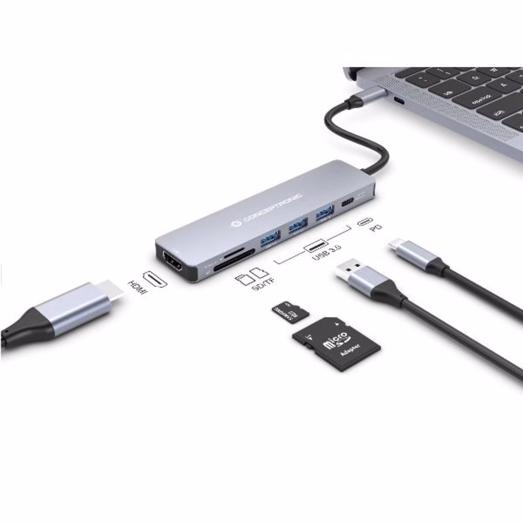 - Adattatore multiporta 7-in-1 da USB-C a HDMI/USB-C PD/USB 3.0/SD/TF
