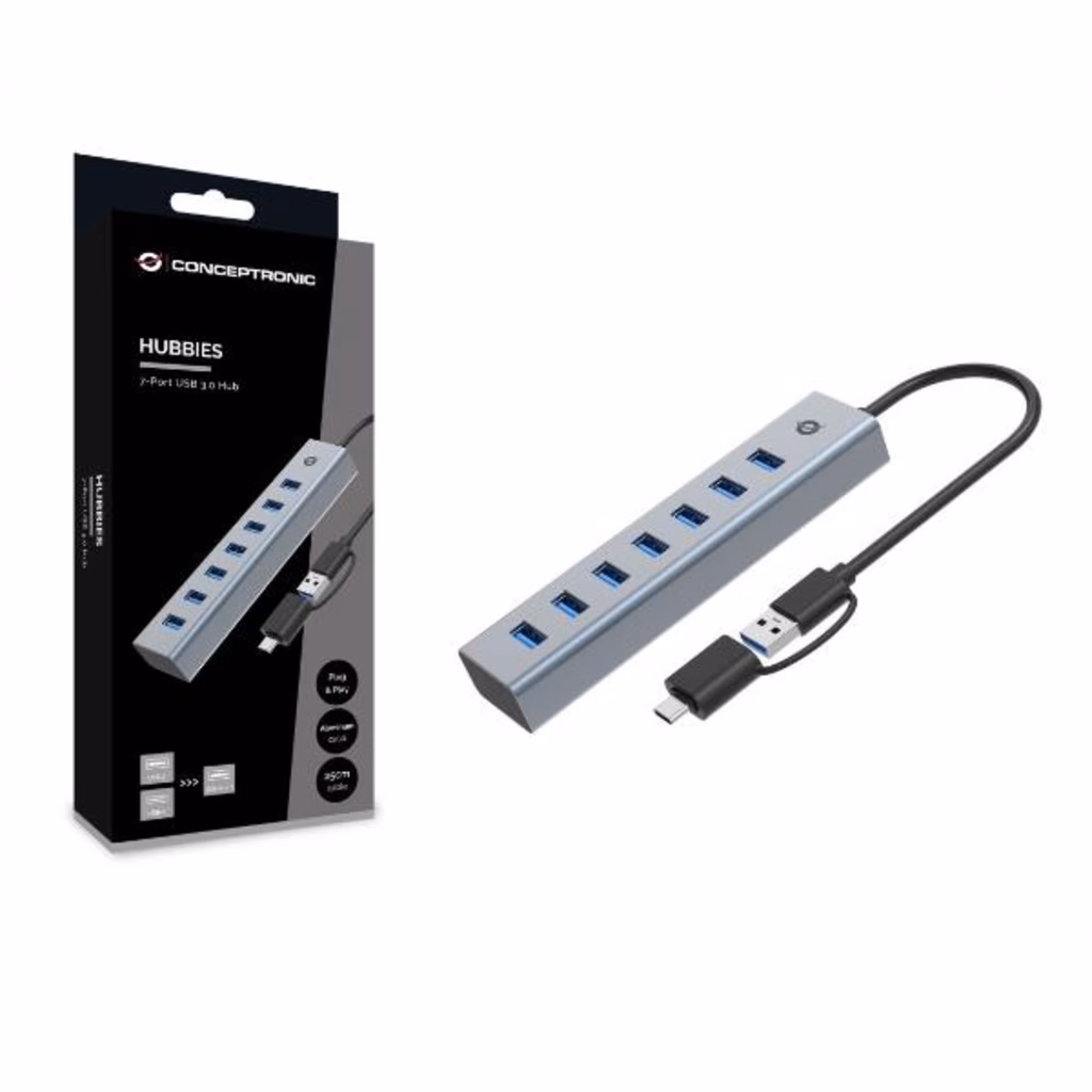 Questo hub USB 3.0 a 7 porte consente di espandere la capacità USB-A o USB-C del dispositivo con 7 porte USB aggiuntive! L'hub consente di collegare facilmente fino a 7 periferiche o gadget compatibili con l'USB al MacBook, al Chromebook Pixel o a qualsiasi altro laptop di ultima generazione dotato di porte USB-A o USB-C. Offre una trasmissione dati costante ed efficiente, con velocità di trasferimento fino a 5Gbps. Inoltre, l'hub è dotato di una porta di alimentazione USB-C che può essere collegata a un adattatore di corrente e che alimenta l'hub quando è collegato a dispositivi ad alta potenza come HDD o SSD, garantendo prestazioni stabili.