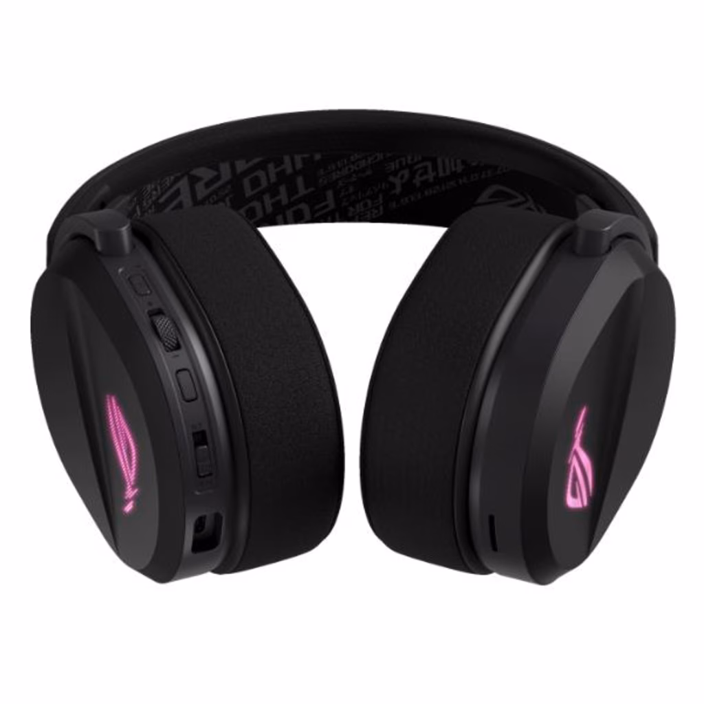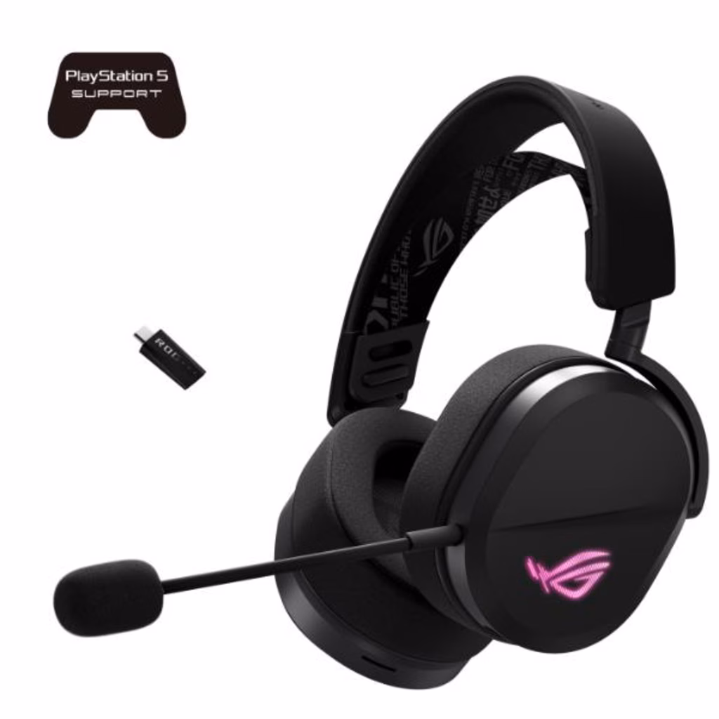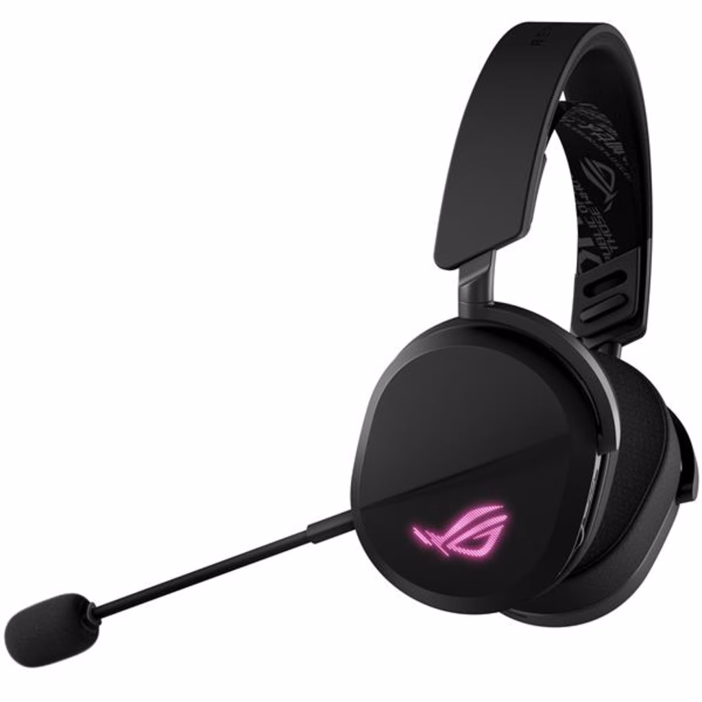Tri-mode RGB gaming headset with ROG SpeedNova wireless technology, 50 mm ROG titanium-plated diaphragm drivers, refined wireless sound signature, 10 mm super-wideband boom microphone, lightweight 309-g design, plus ASUS Aura Sync RGB lighting