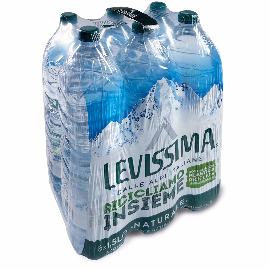 Acqua minerale che nasce da fonti di alta montagna, garanzia di purezza, qualità e natura - particolarmente leggera grazie al basso residuo fisso - Dall'impegno di Levissima per creare un impatto positivo sull'ambiente, nasce la nuova bottiglia Levissima con il 100% di R-PET: un materiale derivato dal riciclo di plastica PET che ne conserva qualità, resistenza e affidabilità.