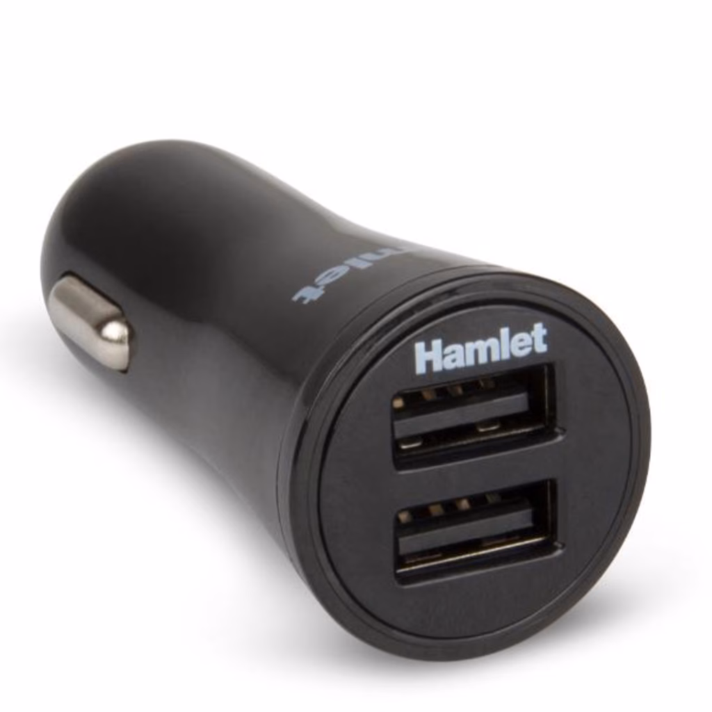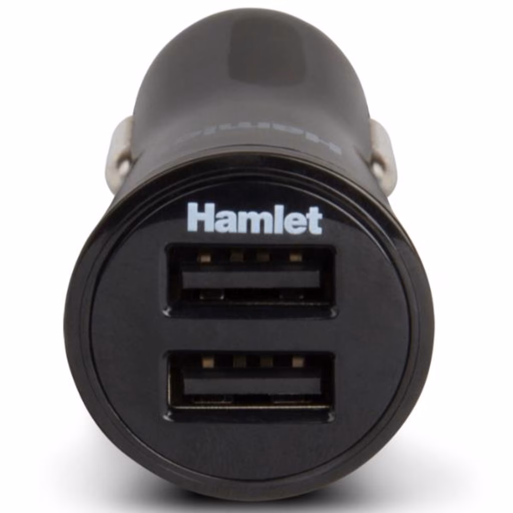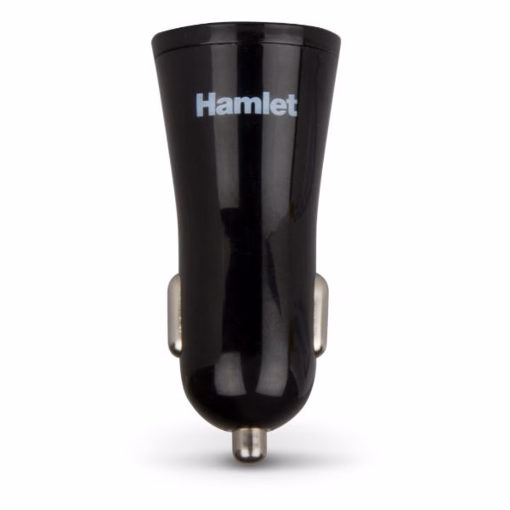 Hamlet Fast Dual Charger è un alimentatore USB da auto che si inserisce in qualsiasi presa per accendisigari da 12 o 24 Volt e consente di caricare 2 dispositivi mobili allo stesso tempo. La tecnologia Fast Charging riconosce automaticamente il dispositivo collegato e fornisce la quantità di corrente necessaria a garantire la massima velocità di ricarica fino a 2400mA e 12W di potenza su una singola porta. Il caricabatterie assicura inoltre protezione da sovraccarichi e cortocircuiti.