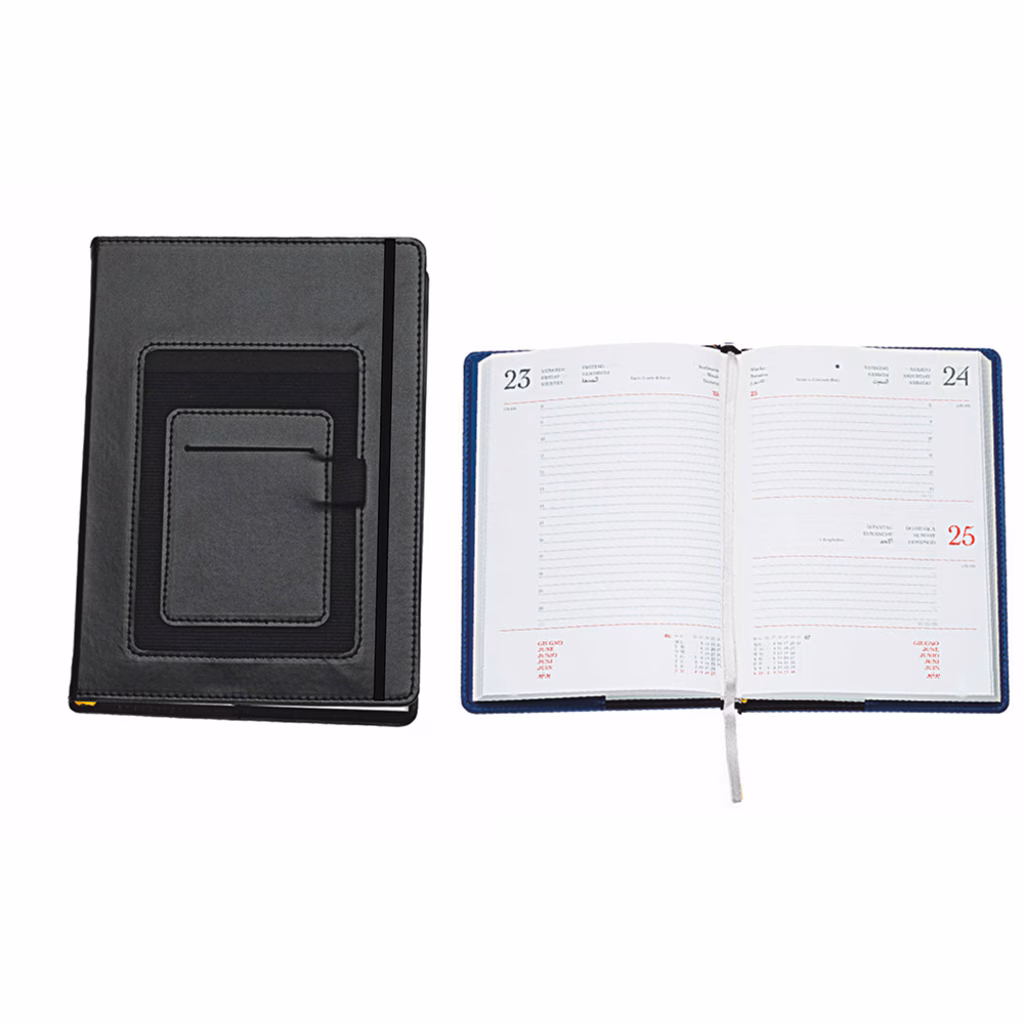 Agenda con tasca portacellulare giornaliera 15x21 nero 30+