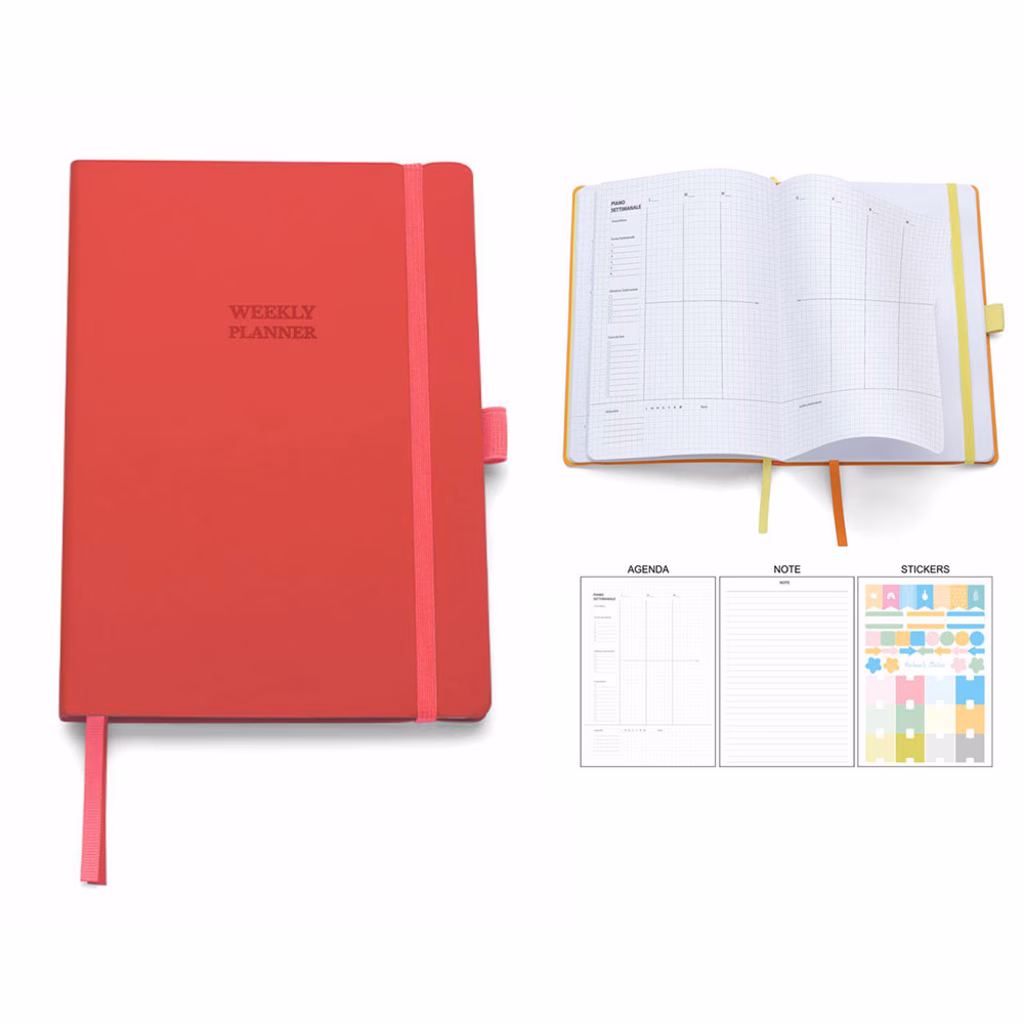 Agenda Perpetua con elastico in PU termovirante giornaliera 15x21 rosso 20+
