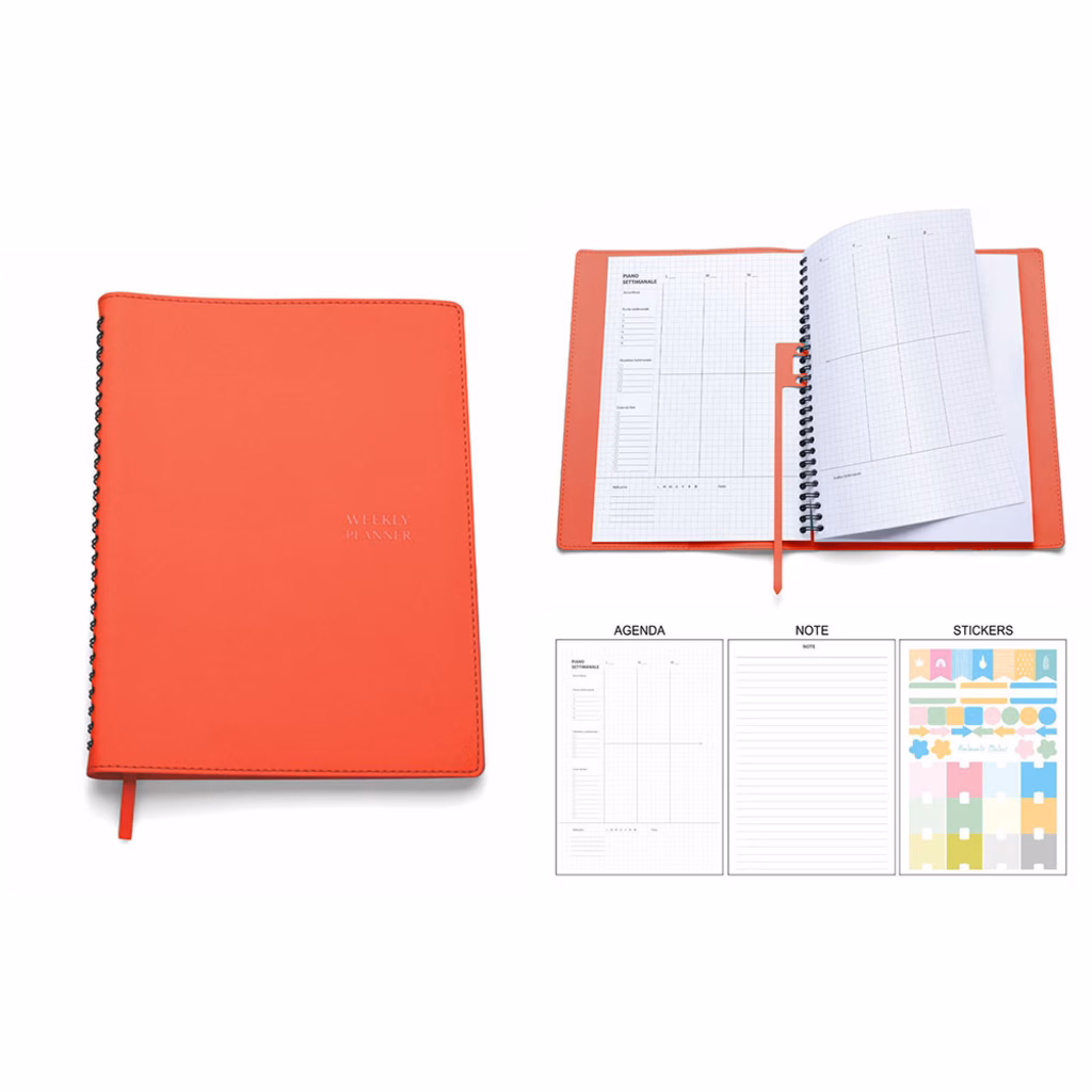 Agenda Perpetua spiralata in PU termovirante settimanale 16,5x23,5 rosso 20+