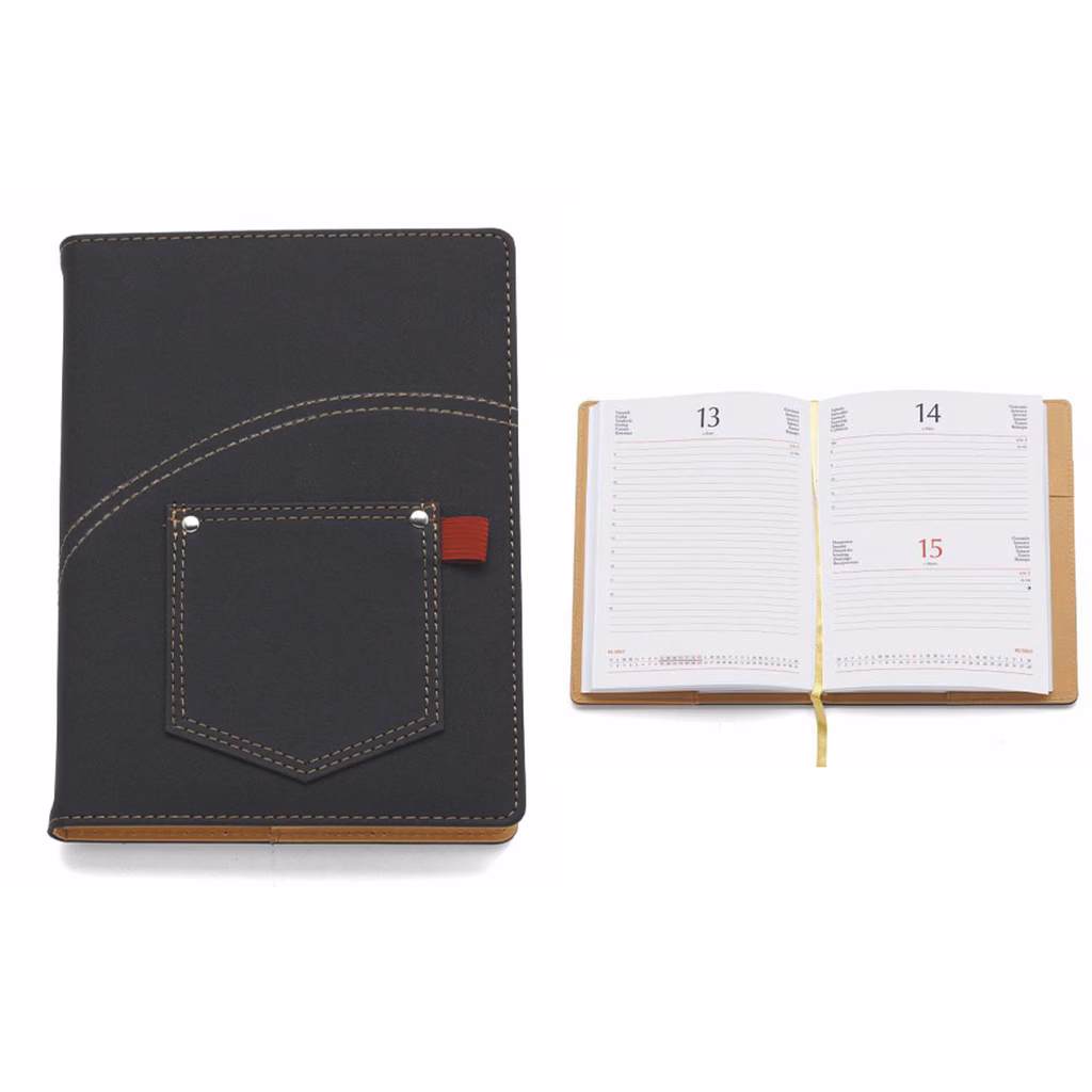 Agenda portafoglio con tasca stile jeans giornaliera 15x21 nero 30+