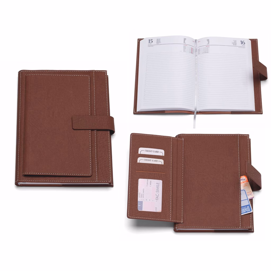 Agenda portafoglio con tasche giornaliera 17x24 marrone 30+