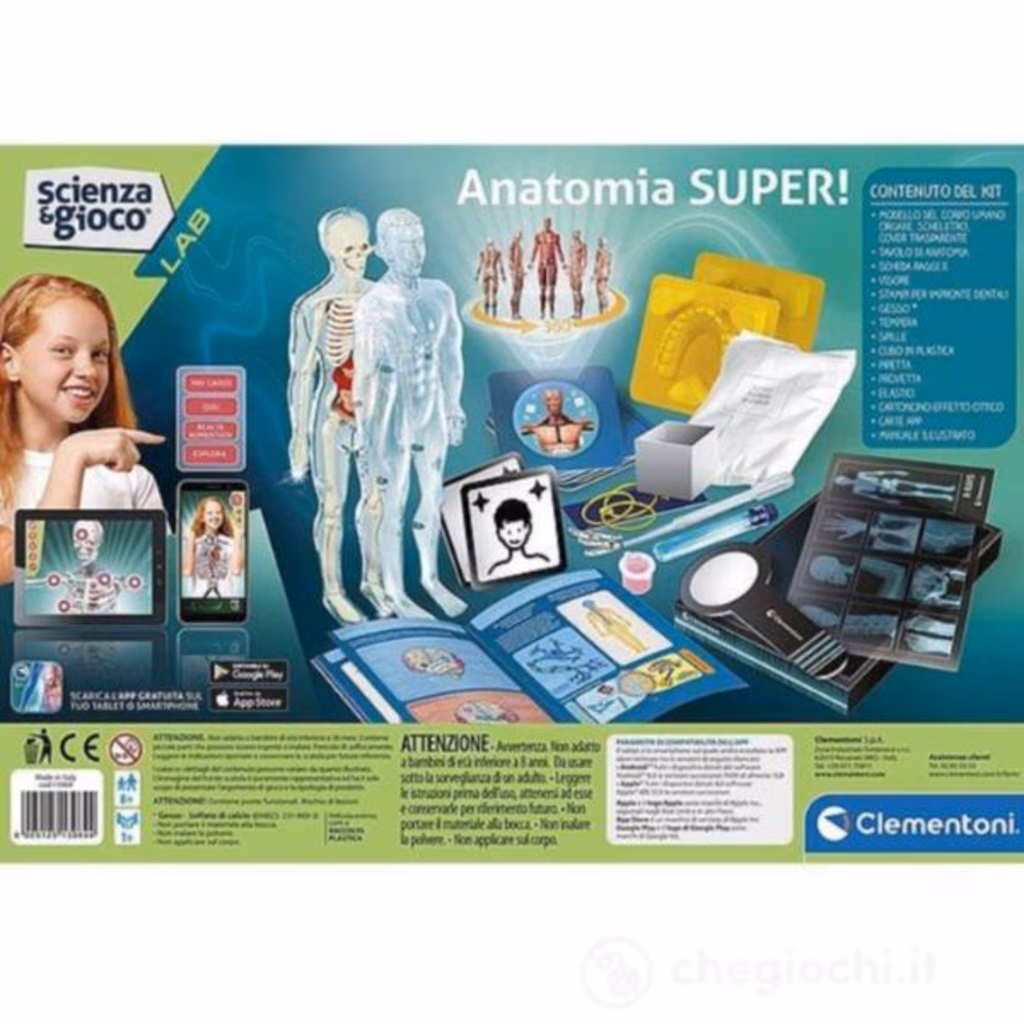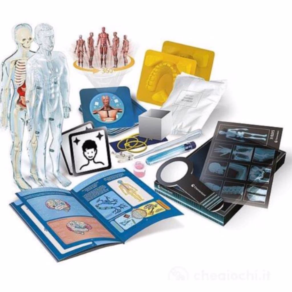 Un grande classico della scienza, il laboratorio di anatomia, rivisitato in chiave moderna, interattiva e divertente. Un fantastico gioco scientifico per conoscere in maniera semplice ed immediata l'anatomia del corpo umano. Contenuto del gioco: un modello del corpo umano da assemblare, arcate dentali da ricostruire, schede illustrate, tante attività per scoprire i 5 sensi e manuale scientifico.