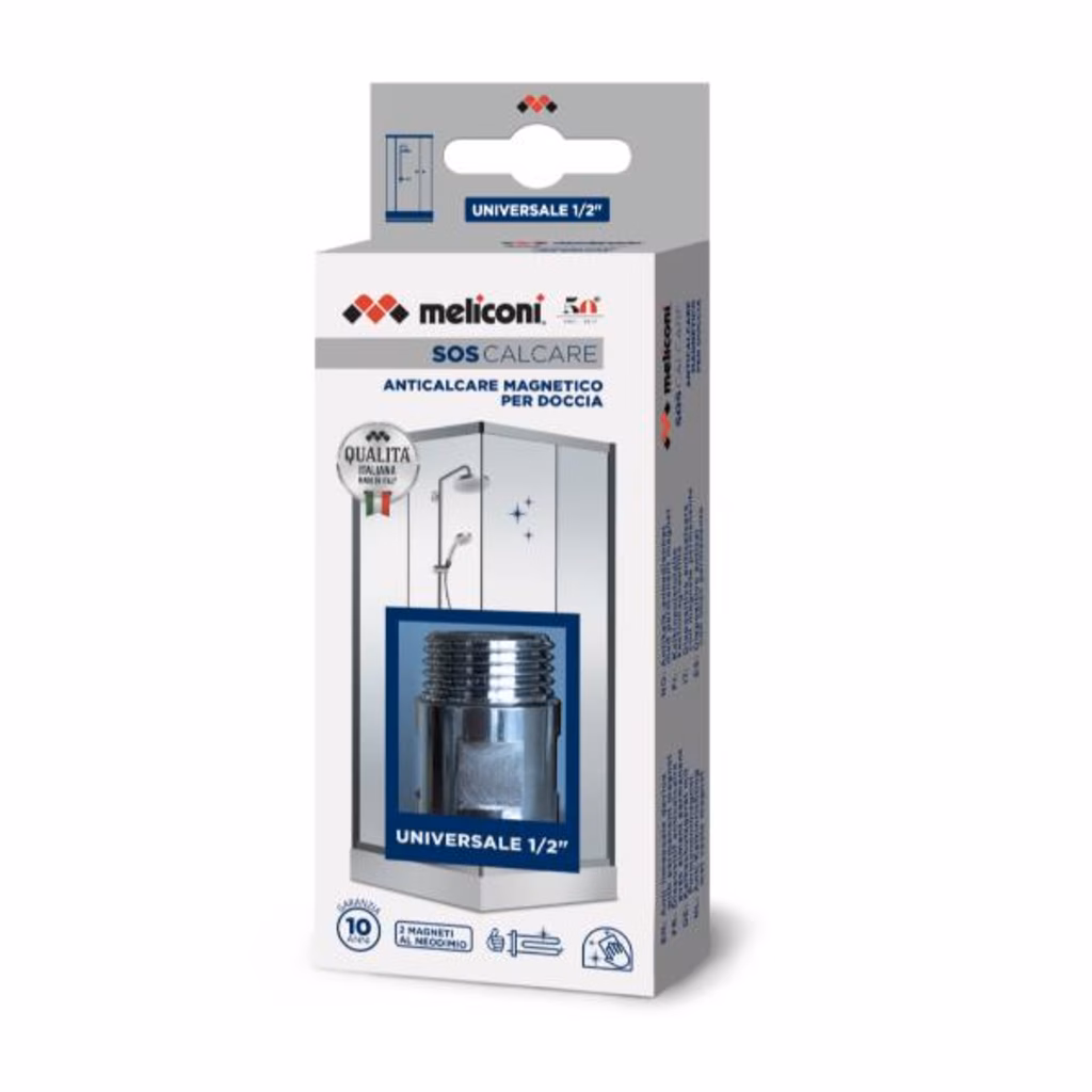 Grazie all azione combinata dei due potenti magneti al Neodimio, SOS Calcare Doccia prolungherà il ciclo di vita del soffione della tua doccia o della tua vasca e migliorerà la pulizia e la brillantezza del box doccia, riducendo così l utilizzo di prodotti chimici per la pulizia. Il prodotto ha un aggancio da 1/2", contiene le necessarie guarnizioni ed è facile da installare