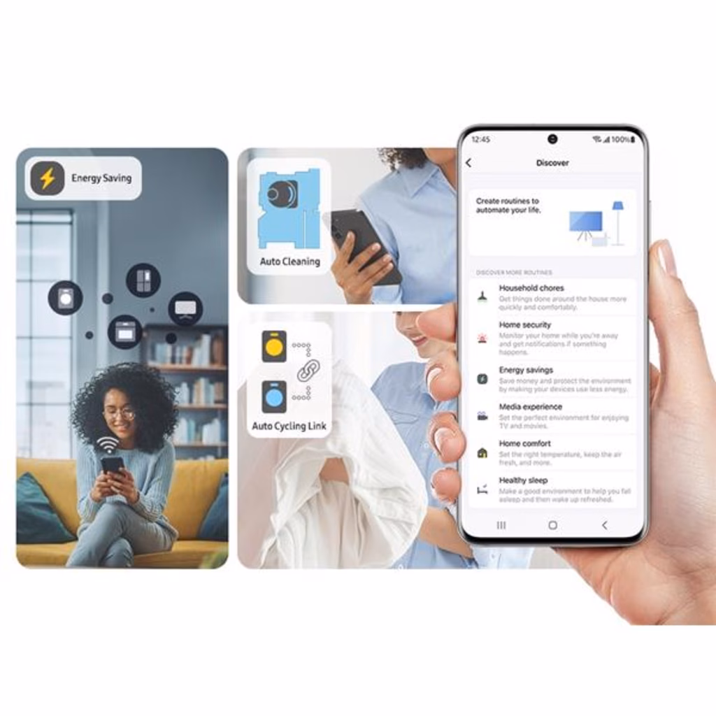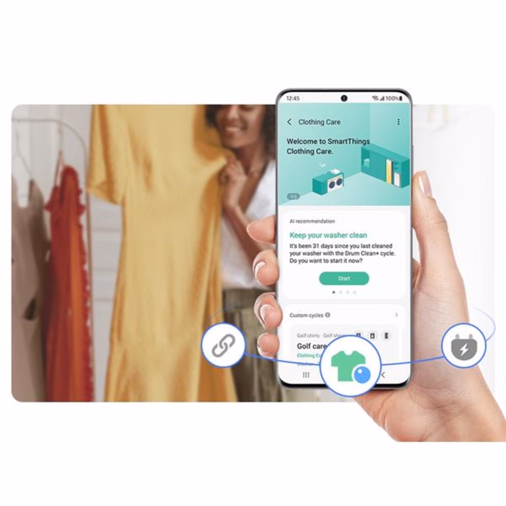 Samsung Series 6 DV90DG6845LB asciugatrice Libera installazione Caricamento frontale 9 kg NeroEfficienza energetica Classe di efficienza energetica A Da oggi potrai risparmiare energia e i tuoi capi saranno sempre perfettamente asciutti. Questo prodotto assicura un'elevata efficienza grazie alla classificazione energetica A, consumando molta meno energia rispetto alle asciugatrici tradizionali[1]. La tecnologia con pompa di calore prevede luso di refrigerante invece dell'elettricità per riscaldare l'aria e ricicla l'aria calda per evitare sprechi di energia. Risparmio energetico intelligente Modalità AI Energy Monitora e riduci il consumo di energia della tua asciugatrice. Grazie alla modalità AI Energy[2] , potrai monitorare in modo semplice e immediato i consumi energetici e prevederli in anticipo. Selezionando questa modalità con alcuni programmi[3] , sarà possibile ridurre i consumi energetici fino al 20%[4] regolando la velocità del compressore inverter e la durata del ciclo. Asciugatura perfetta in 81 minuti[5] Super Speed Vestiti puliti e pronti da indossare in sole 2 ore, risparmiando energia. Il programma Super Speed è in grado di asciugare un carico misto di cotone e sintetici in 81 minuti[5]. E con una lavatrice Super Speed è possibile lavare e centrifugare i capi in 39 minuti[5]. In questo modo, il tuo bucato sarà pulito e asciutto in sole 2 ore. Un motore che dura nel tempo Motore DIT con 20 anni di garanzia Acquista con fiducia qualsiasi modello di lavatrice Samsung con motore Digital Inverter grazie a una garanzia di 20 anni[6] sul motore. Asciugatura più efficace OptimalDry Migliorare le prestazioni di asciugatura non è mai stato così semplice! OptimalDry utilizza 3 sensori per asciugare i tuoi capi in modo efficace. Monitora il livello di umidità e definisce il tempo di asciugatura, per asciugare il tuo bucato in un attimo risparmiando energia. Inoltre, evita che i vestiti vengano maltrattati o rovinati e ti ricorda di pulire lo scambiatore di calore. Asciugatura perfetta in 35 minuti Quick Dry 35' Asciuga rapidamente i capi che usi più spesso, ad esempio una tuta da lavoro o un grembiule per la scuola. Con il programma Quick Dry 35 potrai asciugare un carico ridotto da 1 kg in soli 35 minuti[7]. Grazie a unelevata intensità di calore, con questo programma potrai asciugare in un attimo i vestiti che ti servono subito quando hai fretta. Apertura personalizzata Sportello reversibile Lo sportello reversibile può essere aperto in diverse direzioni in base alla disposizione dei mobili nella stanza. È sufficiente cambiare il lato di apertura in base al luogo di installazione, allambiente circostante e alla modalità duso. Gli stessi elettrodomestici possono aprirsi nello stesso modo o in direzioni opposte. Potrai aggirare perfino le pareti! Niente più pieghe Funzione Antipieghe Anche senza stirarli, i tuoi vestiti non faranno una piega. Ti basterà selezionare la funzione Antipieghe e, al termine del programma di asciugatura, il cestello girerà a intermittenza senza calore per un massimo di 180 minuti. In questo modo, i tuoi capi non resteranno troppo a lungo nella stessa posizione quando sono ancora caldi, per evitare che si formino pieghe. Facile manutenzione Filtro 2 in 1 Manutenzione semplice per un'asciugatura sempre efficiente. Il filtro 2 in 1 è dotato di un doppio strato che cattura polvere e fibre. In questo modo, lo scambiatore di calore non avrà bisogno di un filtro apposito e la manutenzione sarà ancora più semplice. Inoltre, due allarmi ti avviseranno quando è necessario pulire il filtro e lo scambiatore di calore. Deodorare con l'aria Air Refresh[8] Rinfresca il tuo bucato senza strofinarlo né lavarlo a freddo o a caldo, e senza usare una goccia di detersivo. La tecnologia Air Refresh[8] rimuove gli odori da indumenti e lenzuola per mantenerli freschi e profumati. Potrai dire addio agli odori sgradevoli con un semplice getto daria calda. I vestiti sembreranno appena usciti dalla lavanderia e resteranno freschi e profumati a lungo. Fino al 99,9% di sanificazione[10] Hygiene Care Riduce la presenza di batteri e allergeni su vestiti e altri capi. Il programma Hygiene Care sanifica sia i capi asciutti che quelli bagnati[9] assicurando sempre un'asciugatura impeccabile. L'infusione di calore ad alta temperatura durante l'asciugatura elimina il 99% di alcuni batteri[10] e riduce gli acari della polvere e gli allergeni[11]. Sempre connessi grazie a SmartThings Wi-Fi integrato Il modo più semplice ed efficace per usare la tua asciugatrice. L'app SmartThings[12] utilizza i dati acquisiti durante le interazioni con gli utenti per migliorare le prestazioni di asciugatura. Dry Planner ottimizza la tua programmazione giornaliera[13]. Inoltre, se la lavatrice e l'asciugatrice sono connesse, la funzione Auto Cycle Link seleziona il programma di asciugatura ideale in base al lavaggio. SmartThings Clothing Care Lavaggio su misura. Il modo più semplice per fare il bucato. Un bucato perfetto, proprio come lo vuoi tu. La funzione Clothing Care, offerta dallapp SmartThings[14] , analizza l'utilizzo[15] e vari fattori esterni, ad esempio il clima, per dare consigli e creare cicli di asciugatura personalizzati in base al proprio stile di vita[16]. SmartThings Energy Per utilizzare l'energia nel modo più efficiente. Il modo più intelligente per risparmiare. Gestisci i tuoi consumi energetici SmartThings Energy[17] ti offre una serie di consigli utili per migliorare l'efficienza energetica. Inoltre, questa funzione ti consente di monitorare in tempo reale il consumo energetico dei tuoi elettrodomestici[18] e di confrontarli con quelli del mese precedente. E se stai per superare la soglia di consumo mensile che hai impostato, il sistema ti invierà una notifica. SmartThings Home Care Manutenzione intelligente. Prestazioni eccezionali. Prendersi cura della lavatrice o dellasciugatrice non è mai stato così semplice. SmartThings Home Care[19] ti avvisa quando 