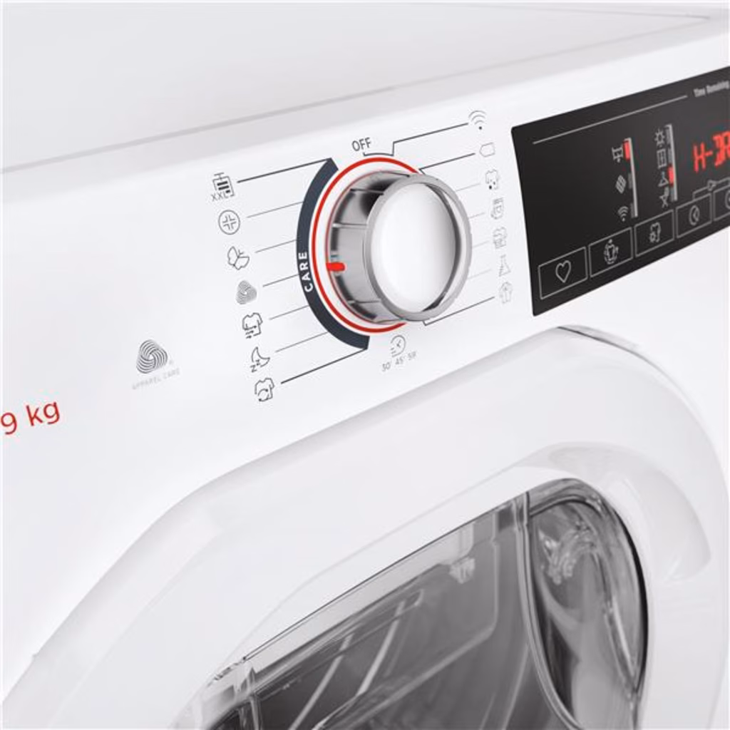 Hoover H-DRY 350 HRE H9A2TE-S asciugatrice Libera installazione Caricamento frontale 9 kg BiancoH-DRY 350 H-DRY 350 è dotato di un set completo di cicli di asciugatura per offrirti la migliore cura per i tuoi vestiti e preservare tessuti e colori più a lungo senza alcuno sforzo. Puoi anche collegarlo all'app hOn per migliorare le tue prestazioni di asciugatura: gestisci la tua asciugatrice da remoto grazie alla tecnologia Wi-Fi + Bluetooth e ottieni utili suggerimenti per migliorare i risultati di asciugatura.Massima cura per capi delicatiLe asciugabiancheria Hoover offrono performance eccezionali mantenendo sempre gli indumenti delicati come se fossero nuovi. Quindi, non è una sorpresa che Hoover abbia ricevuto la certificazione Woolmark per il suo speciale programma lana.Quattro livelli di asciugaturaTutte le asciugatrici Hoover sono dotate di quattro opzioni di asciugatura. Pronto stiro: lascia gli indumenti con una piccola quantità di umidità rimasta al loro interno, per facilitare la stiratura. Appendiabiti a secco - Indumenti pronti per essere appesi. Armadio a secco - Indumenti pronti per essere riposti. Asciugatura a secco - Indumenti completamente asciuttiCiclo Auto CareIl programma Auto Care ti libera dai problemi; è in grado di adattare automaticamente l'azione di asciugatura alla quantità e alla tipologia del carico per i migliori risultati senza preoccupazioni.Scansione etichette e guardaroba virtualeDimenticati delle etichette del bucato! L'esclusiva funzione Scan to Care, disponibile sull'app hOn, ti permette di creare il tuo guardaroba virtuale. Basta scattare una foto del tuo capo, l'app raccoglierà e memorizzerà tutte le indicazioni per l'asciugatura, suggerendoti il ??programma e il trattamento specifico per prendertene cura.Design e praticitàUn sistema unico brevettato da Hoover che raccoglie l'acqua nell'oblò. Si adatta perfettamente al design del prodotto e consente di vedere sempre il livello dell'acqua. Ha una comoda maniglia che consente di rimuoverlo e trasportarlo in maniera facile. Una forma innovativa e compatta che previene fuoriuscite d'acqua e assicura una facilità di svuotamento. Questo rende facile il riutilizzo di acqua demineralizzata per quotidiane faccende domestiche.Lunga durataProlunga la longevità della tua asciugatrice grazie al monitoraggio continuo del suo stato di salute tramite l'app hOn. Ricevi notifiche utili quando è necessaria la manutenzione e scopri le attività di manutenzione specifiche grazie alla guida passo passo. Esegui inoltre facilmente gli aggiornamenti software da remoto, senza bisogno di assistenza tecnica.Grandi prestazioni ed efficienzaSincronizza la tua lavatrice con la tua asciugatrice e ottieni la migliore cura per i tuoi capi. L'App hOn ti suggerirà il miglior programma di asciugatura, adattandolo alla quantità e al tipo di tessuto, garantendoti maggiori prestazioni ed efficienza.Cicli dedicati a cura e igieneScegli tra oltre 40 cicli aggiuntivi disponibili tramite l'app hOn e personalizzali in base alle tue esigenze per ottenere risultati perfetti. Potrai inoltre salvare i tuoi programmi preferiti, accedere a un mondo di informazioni e suggerimenti e ricevere notifiche di fine ciclo per avere tutto sotto controllo.Dimentica le etichette di lavaggioDimentica le etichette e gli errori del bucato con l'innovativa funzione Scan to Care. Basta scattare una foto alle etichette dei tuoi capi e l'app hOn riconoscerà automaticamente le informazioni di asciugatura e ti suggerirà il ciclo giusto per ottenere il miglior risultato.Migliora le prestazioni dell'asciugatriceOttieni i migliori risultati di asciugatura grazie all'app hOn. Accedi a funzioni extra e programmi specifici progettati per le tue esigenze e migliora le prestazioni e l'efficienza della tua asciugatrice. Con il controllo da remoto potrai inoltre gestire il tuo elettrodomestico ovunque tu sia tramite il tuo smartphone o smart speaker, come Google Home e Amazon Alexa.