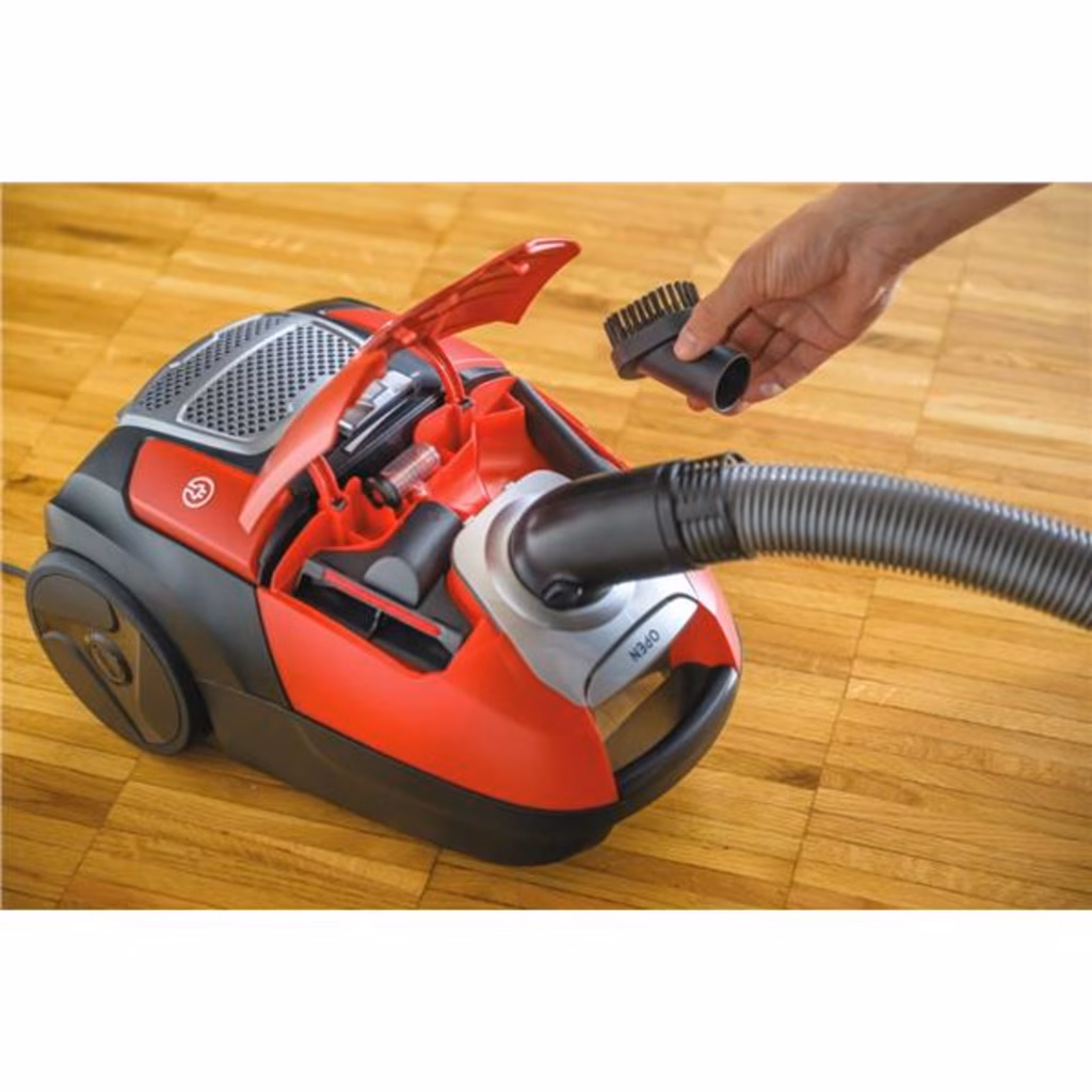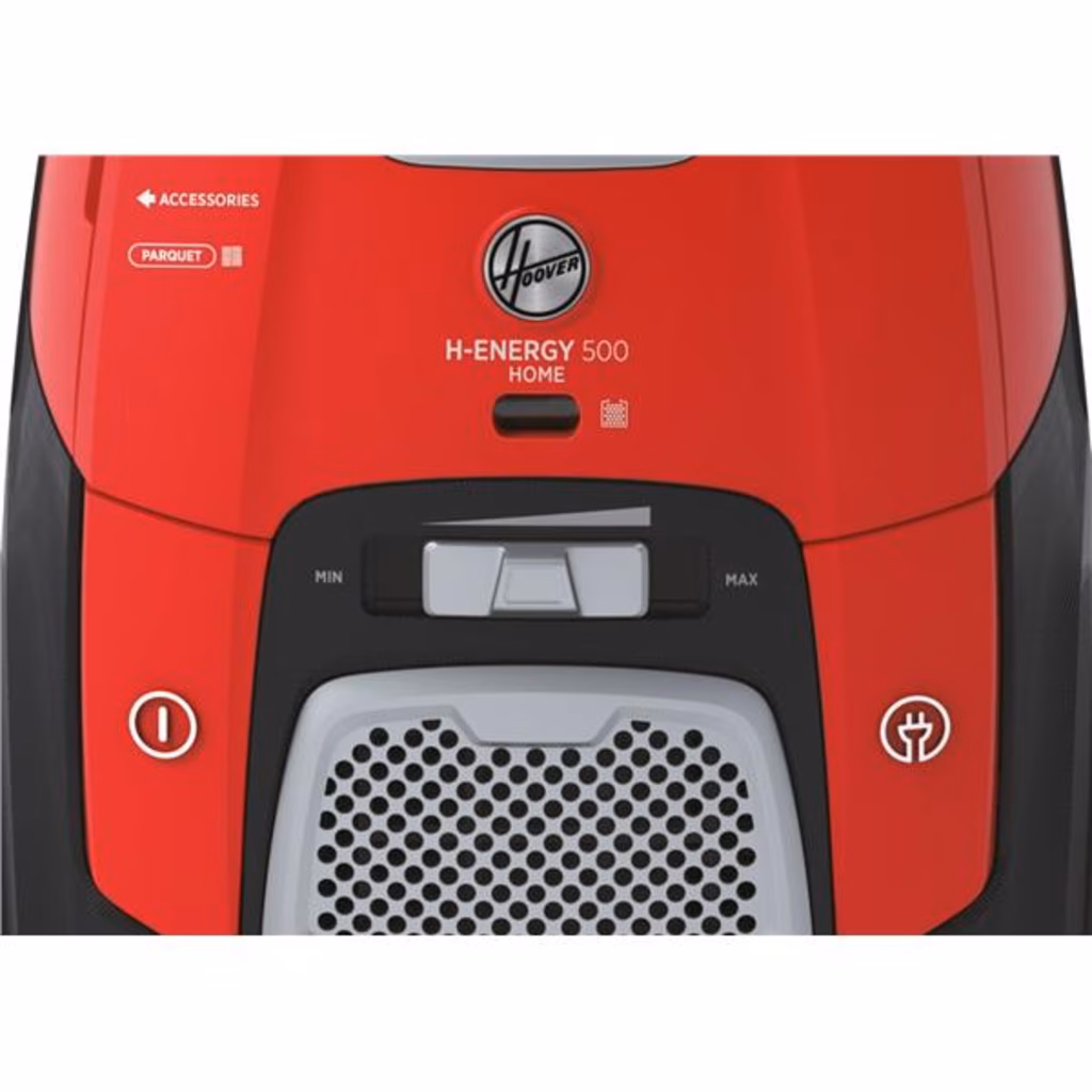 HE510HM 011H-ENERGY 500 H-ENERGY 500 è un aspirapolvere con sacco da 3,5 Litri di dimensioni standard, che offre incredibili prestazioni di pulizia per risultati eccellenti. Inoltre, è dotato di accessori integrati e sistema di insorizzazione che garantisce bassi livelli di rumorosità.Basso livello di rumorositàH-ENERGY 500 stato progettato per ottenere ottimi risultati di pulizia su tutte le superfici con un basso livello di rumorosità: solo 69 dBA!Igiene superioreNessun contatto con la polvere, grazie al sistema automatico di svuotamento dei sacchetti. Basta premere il pulsante di espulsione per rilasciare il sacco in modo completamente igienico. Ideale per asmatici e per chi soffre di allergie.Elevata filtrazioneH-ENERGY 500 è dotato di un sacco Epa da 3,5L e di un filtro E12 lavabile, per una filtrazione ottimale dell'aria.Accessori integratiGrazie allo sportello per accessori integrato, la bocchetta per fessure, la spazzola a pennello e la bocchetta per mobili saranno a portata di mano. Risparmia spazio, tempo ed evita la perdita degli accessori!Ampio raggio di lavoroH-ENERGY 500 ha una lunghezza del cavo di 6 m per poter raggiungere i punti più lontani senza doversi fermare.Spazzola ParquetDotato di una spazzola aggiuntiva dedicata alla cura dei tuoi pavimenti in legno, parquet o laminato. Le setole morbide e le ruote in feltro consentono di pulire le superfici delicate senza il rischio di graffiarle.