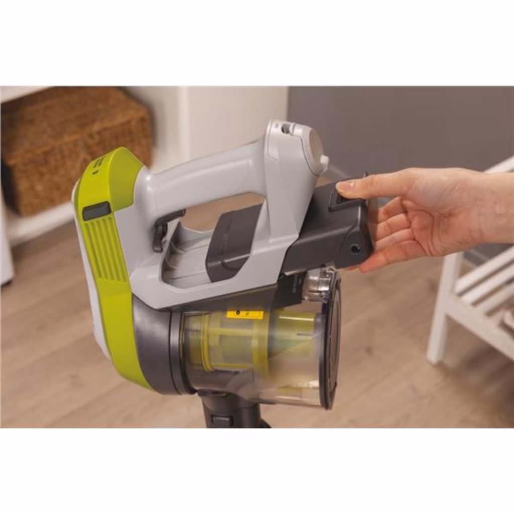 HF110H 011HF1 L'aspirapolvere senza filo HF1 è progettata per garantire una pulizia efficace senza sforzi, grazie alla sua grande capacità, agli accessori integrati e alla funzione Park&Go.Spolvera e pulisci tutte le fessure con HF1HF1 è dotato di 2 strumenti integrati pronti per l'uso: la spazzola per spolverare pulisce le superfici più delicate, come le librerie, e rimuove i detriti dai piani di lavoro; la pratica bocchetta per fessure pulisce angoli stretti, battiscopa o spigoli.Maggiore capacità del contenitore, minore manutenzioneIl capiente contenitore da 0,9 L riduce la frequenza del contatto con polvere e allergeni, dando la possibilità di una manutenzione meno frquente.Veloce ricarica della batteriaLa batteria da 22V è rimovibile dal prodotto per darti la libertà di caricarla ovunque, con il solo utilizzo del caricabatterie dedicato.Manutenzione della spazzola senza sforzoEstrai il rullo senza bisogno di altri attrezzi con il comodo sistema Brush Release. Questo sistema agevola la rimozione di eventuali peli aggrovigliati, garantendo la manutenzione del vostro aspirapolvere senza fili sempre in ottime condizioni.Modalità continua per pulizie senza sforziNon dovrai più tenere premuto il pulsante on-off, basta impostare la modalità continua tramite l'apposita leva per pulire la casa senza alcuno sforzo. La modalità continua aiuta a prevenire l'affaticamento durante la sessione di pulizia.Quick PARK&GOHai bisogno di rispondere al telefono mentre passi l'aspirapolvere? Detto fatto! HF1 può essere temporaneamente parcheggiato in posizione verticale, per consentirti di gestire agevolmente più compiti al contempo.Batteria sotto controlloLo status della batteria è evidenziato da luci LED che ti avvisano quando è il momento di caricare il prodotto e quando è pronto per essere utilizzato.Massima autonomiaHF1 ha fino a 30 minuti di autonomia per pulire in modalità Eco, senza cavi che vincolino le tue sessioni di pulizia.Elevata visibilità della polvere, anche quella più nascostaLa luce LED della bocchetta illumina le zone buie, come sotto il letto o sotto i divani. La polvere non potrà più nascondersi!Extra potenza d'aspirazionePremendo il bottone TURBO, il tuo aspirapolvere sarà in grado di aspirare anche lo sporco più difficile.Svuotamento in un toccoIl sistema One Touch consente uno svuotamento facile, rapido e igienico del tuo aspriapolvere senza filo HF1, senza alcun contatto con polvere e detriti.