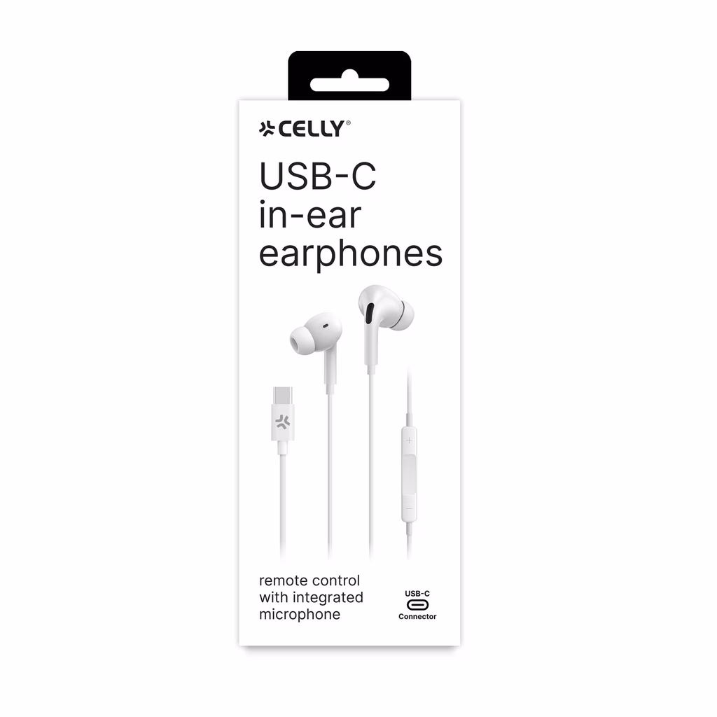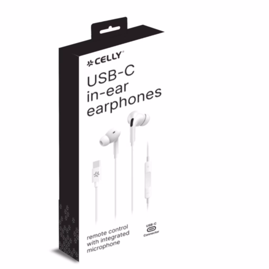 Immagine di Auricolari con filo si USB-C Bianco CELLY PC2USBCEARPIN - USB-C Stereo Wired Earphones PROC PC2USBC