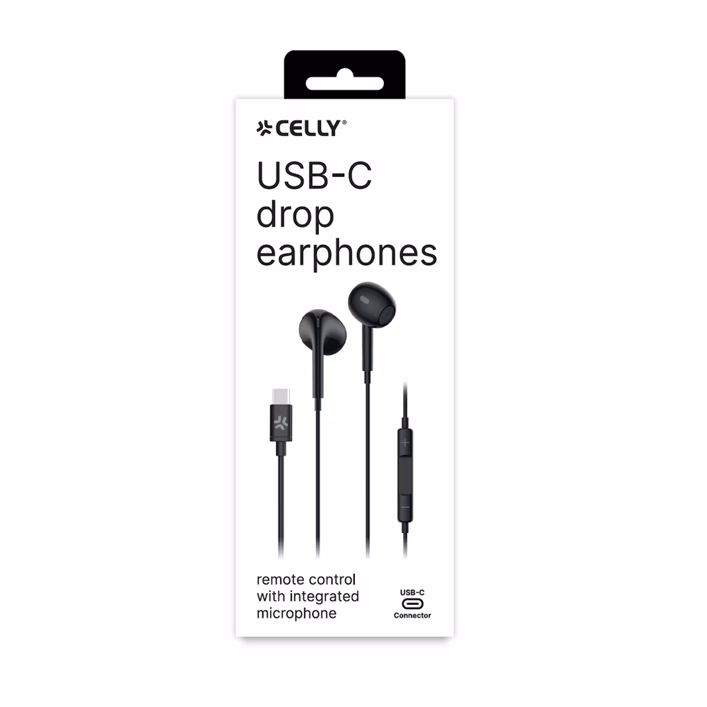 Auricolari con filo si USB-C Nero CELLY UP1300TYPEC - USB-C Stereo Wired Earphones UP1300TYPECBK