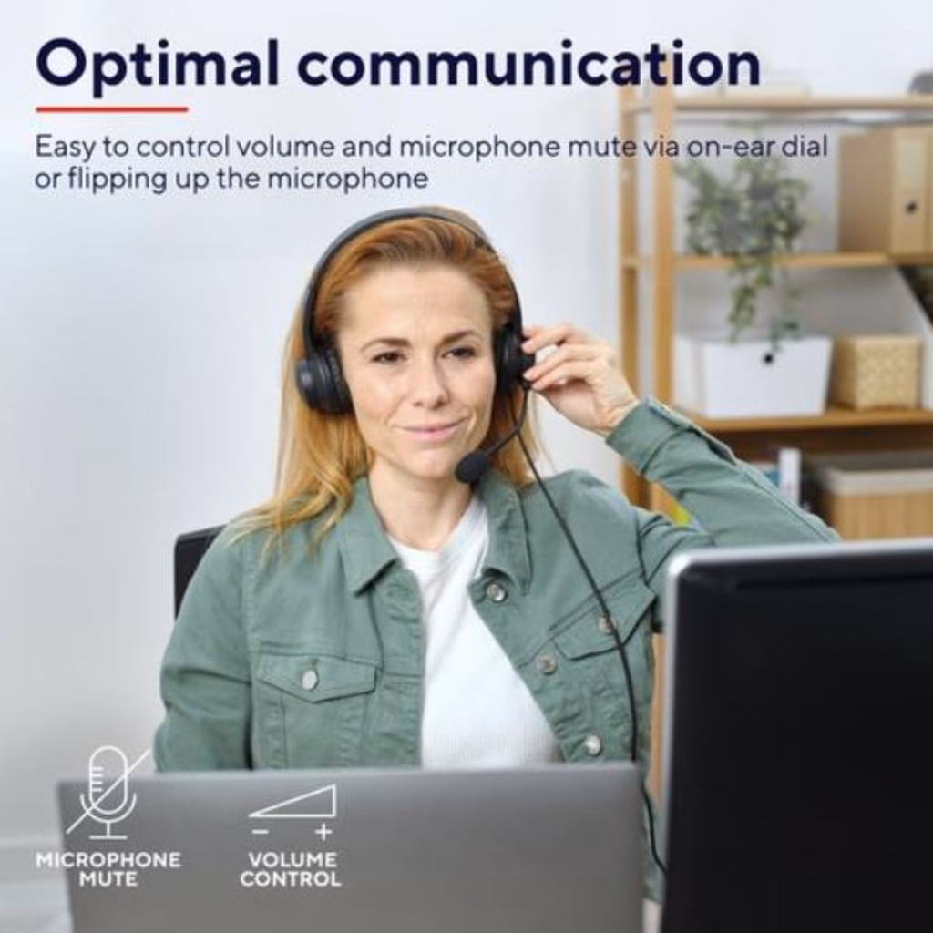Con le cuffie Ayda potrai immergerti nelle riunioni in tutta comodità. Dotate di comandi per il volume on-ear e microfono flip-to-mute, avrai tutto sotto controllo per riunioni e videochiamate ancora più produttive.