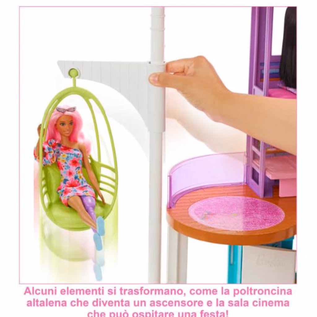 La casa delle bambole a 2 piani di Barbie offre infinite possibilità di gioco. Scopri le sei aree diverse tra cui una camera da letto, un bagno, una cucina, una sala da pranzo, un salotto e un armadio. Questa casa di Barbie stimola la creazione di storie sempre divertenti.
