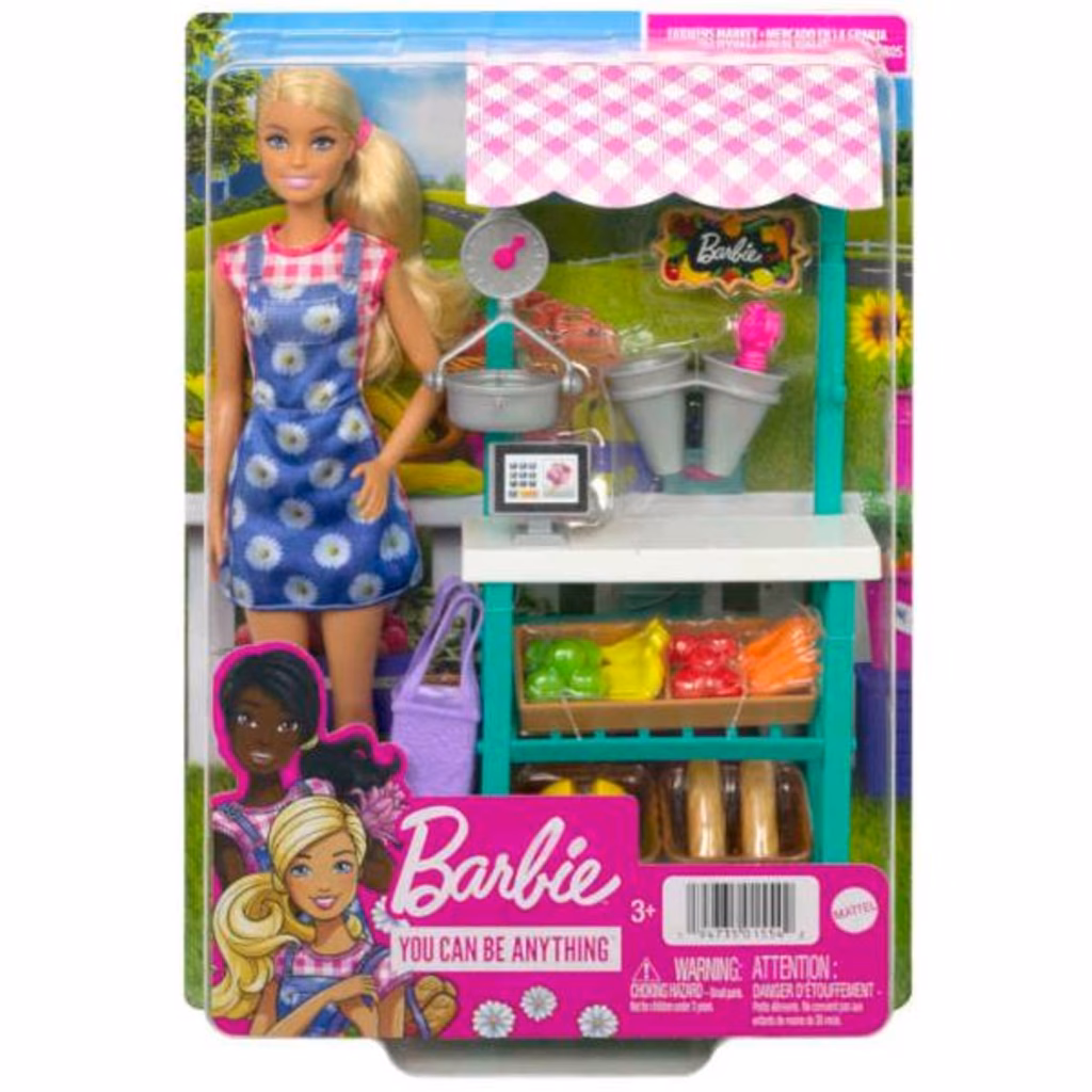 Scopri quanto è divertente fare la spesa al mercato con il playset Barbie® Mercato Frutta e Verdura. Barbie® (bionda, alta 29,21 cm) indossa un adorabile abito a quadretti, un grembiule con stampa floreale e un paio di stivali alti rosa, pronta a servire i suoi clienti. La bancarella del mercato ha una copertura in stile cabana con stampa a quadretti e scaffali, oltre a due cestini che contengono frutta, verdura, formaggio e pane.
