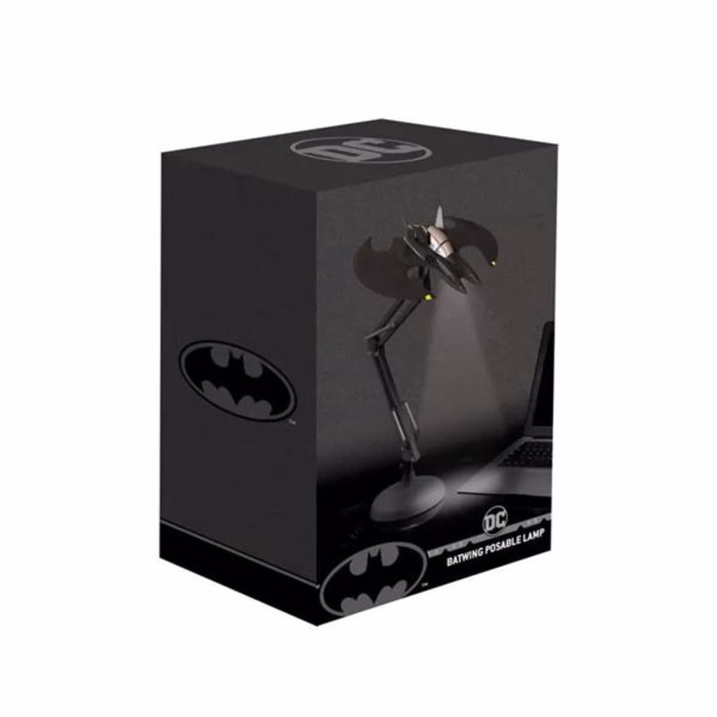 Con un'altezza di 60 cm (23,5 pollici) e alimentazione tramite USB (con un cavo USB da 3 m incluso), la lampada da scrivania snodabile Batman è ideale per camere da letto o spazi di lavoro e, con un elegante design nero, rappresenta un fantastico accessorio per la casa a tema Batman.
