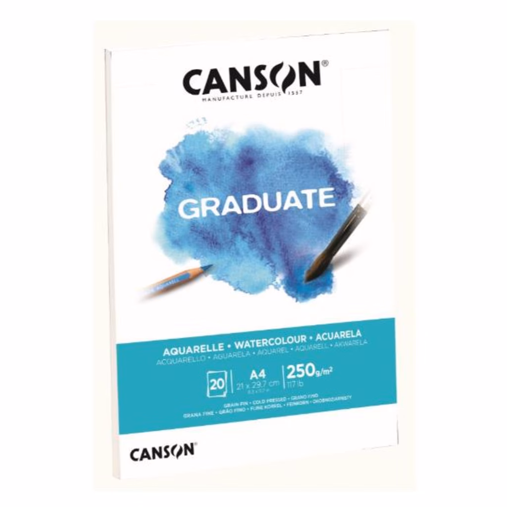 Canson® Graduate Aquarelle sono realizzati con carta bianca, resistente e a grana fine.