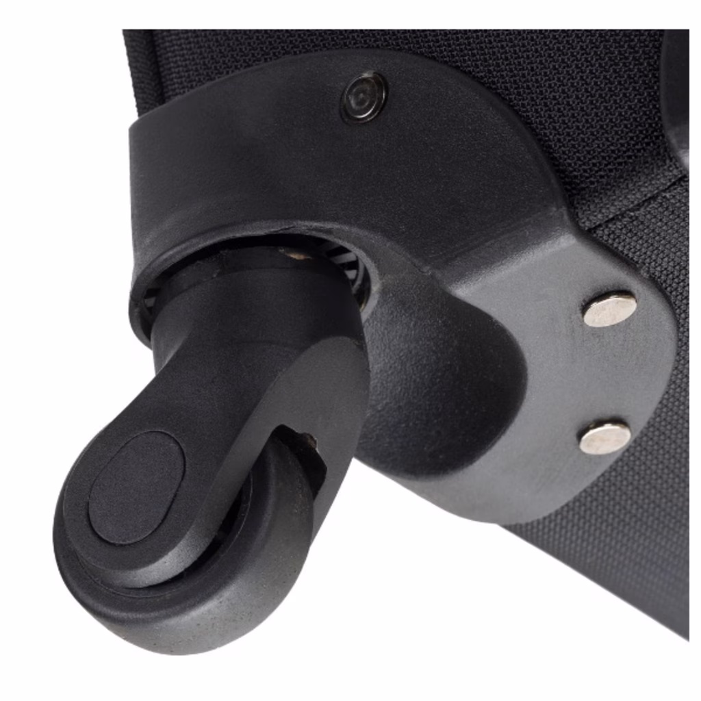 Quattro ruote rotanti a 360 gradi per scivolare dolcemente negli aeroporti e un robusto carrello in alluminio a 3 sezioni con tubo di ferro.