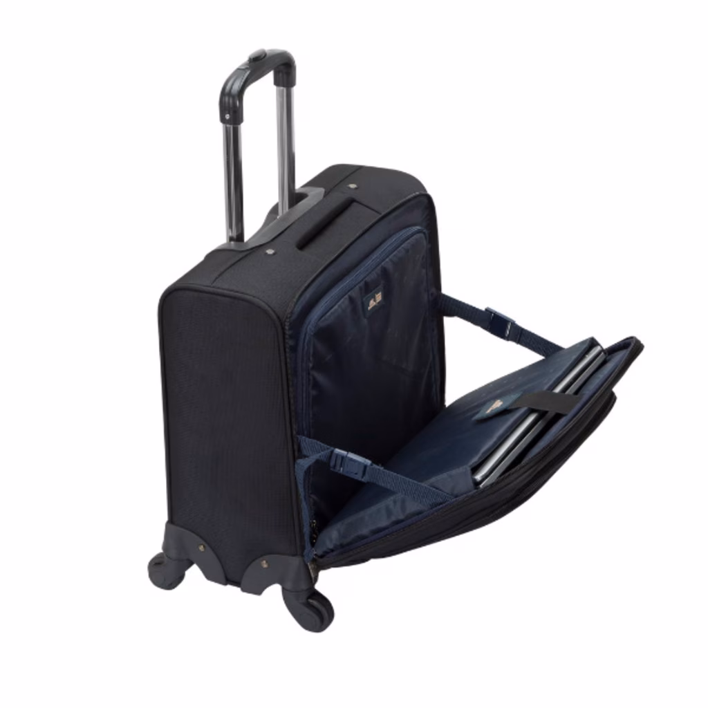 Trolley Bag di alta qualità su quattro ruote a 360 ° per una migliore manovrabilità su più superfici. Realizzato in materiale resistente all'acqua, è dotato di 3 scomparti con cerniera e una maniglia pull up multi-strato.
