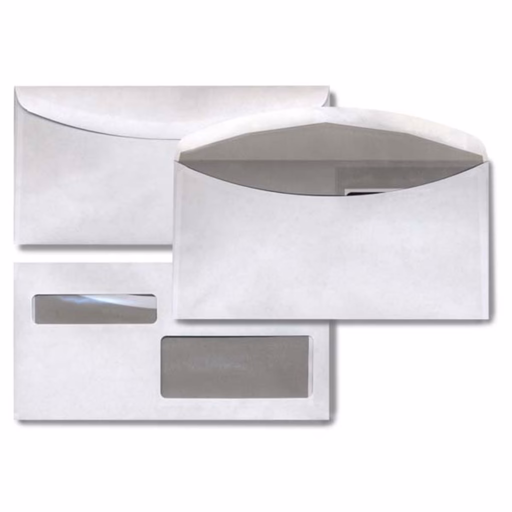 Busta in carta bianca uso mano - sagoma tipo "Postel" per imbustamento automatico - lembo gommato - doppia finestra cm 2,3x9 e cm 4,5x11
