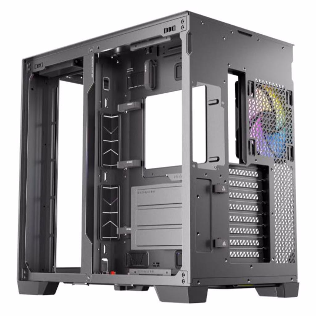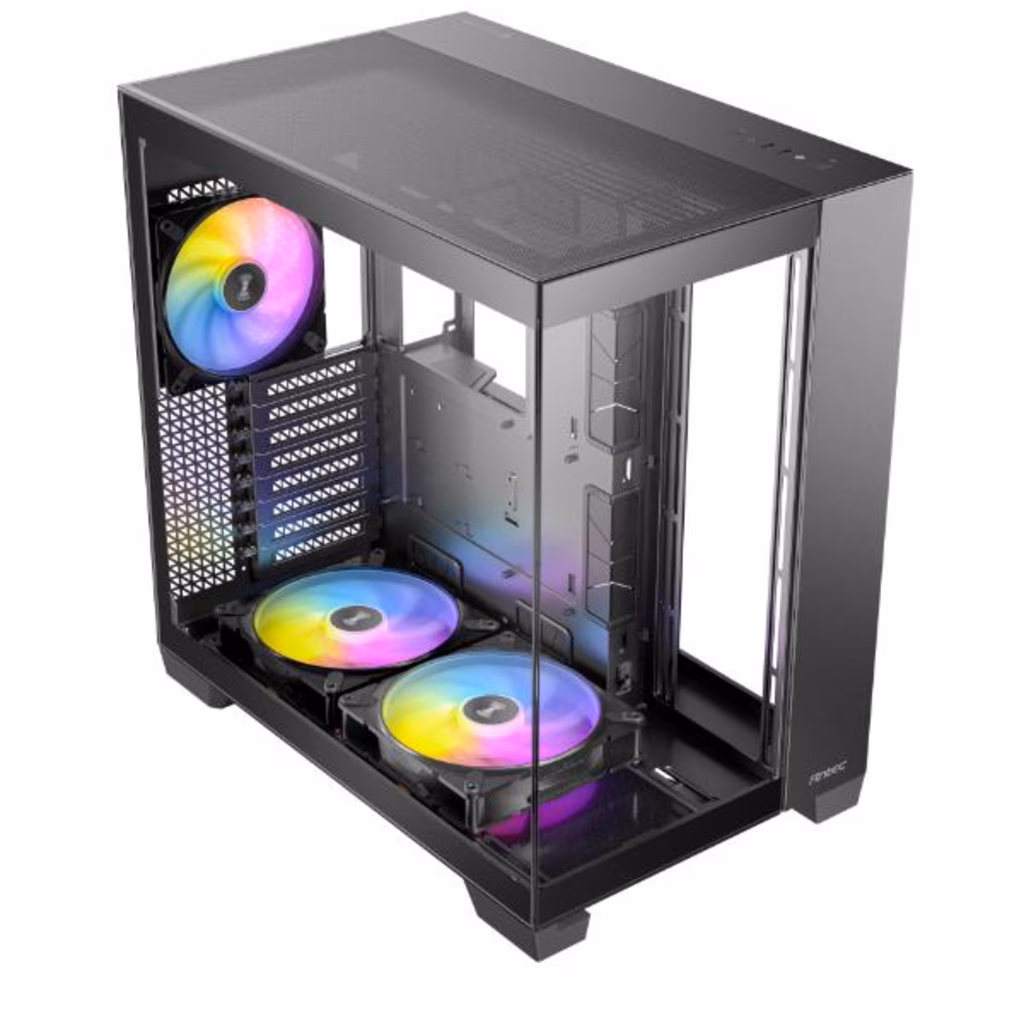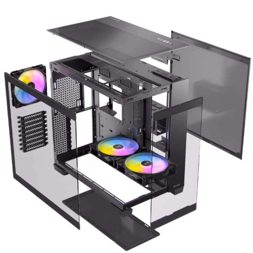 Il pannello frontale e quello sinistro utilizzano un'esclusiva tecnica di smussatura a 45° che rompe la barriera tra i due pezzi di vetro. Il bordo estremamente sottile della giunzione del vetro migliora l'esperienza visiva ininterrotta, panoramica e ultra-trasparente della vista a 270°, consentendo una vetrina completa dei componenti del PC di fascia alta e effetti di luce abbaglianti.