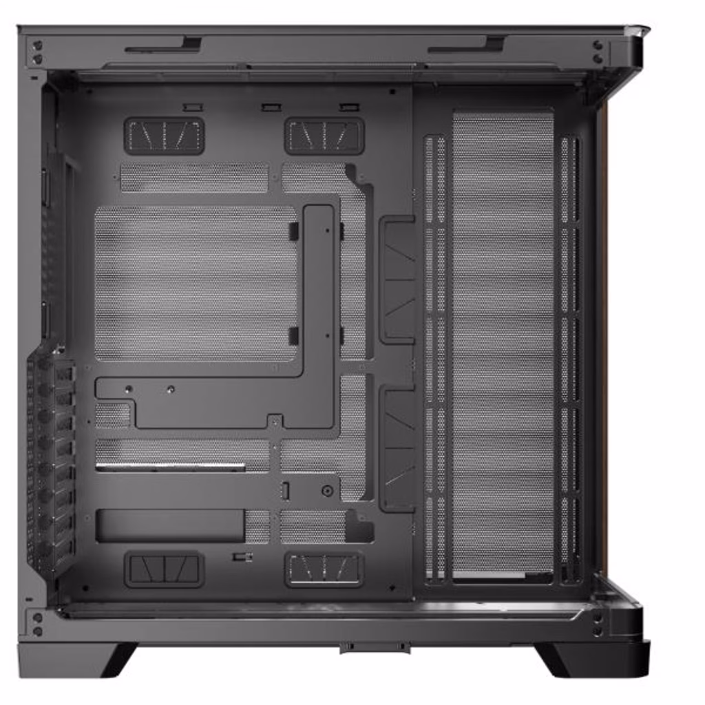 7. Supporto per ventola inferiore: Supporta tre ventole da 140 mm e offre spazio per due ventole da 160 mm, che raffreddano direttamente la scheda grafica, migliorando l'efficienza del raffreddamento.