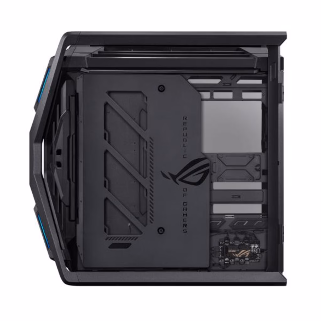Il ROG Hyperion GR701 BTF Edition presenta un formato X sia nella forma che nella funzionalità, cosa che i builder di tutto il mondo desiderano. Con il supporto per doppi dissipatori da 420 mm, schede video imponenti, un supporto per schede grafiche in alluminio a 2 vie completamente integrato, ricarica di dispositivi da 60 watt e doppi connettori USB-C anteriori per schede madri ROG compatibili, è davvero uno chassis per PC in pieno stile ROG.