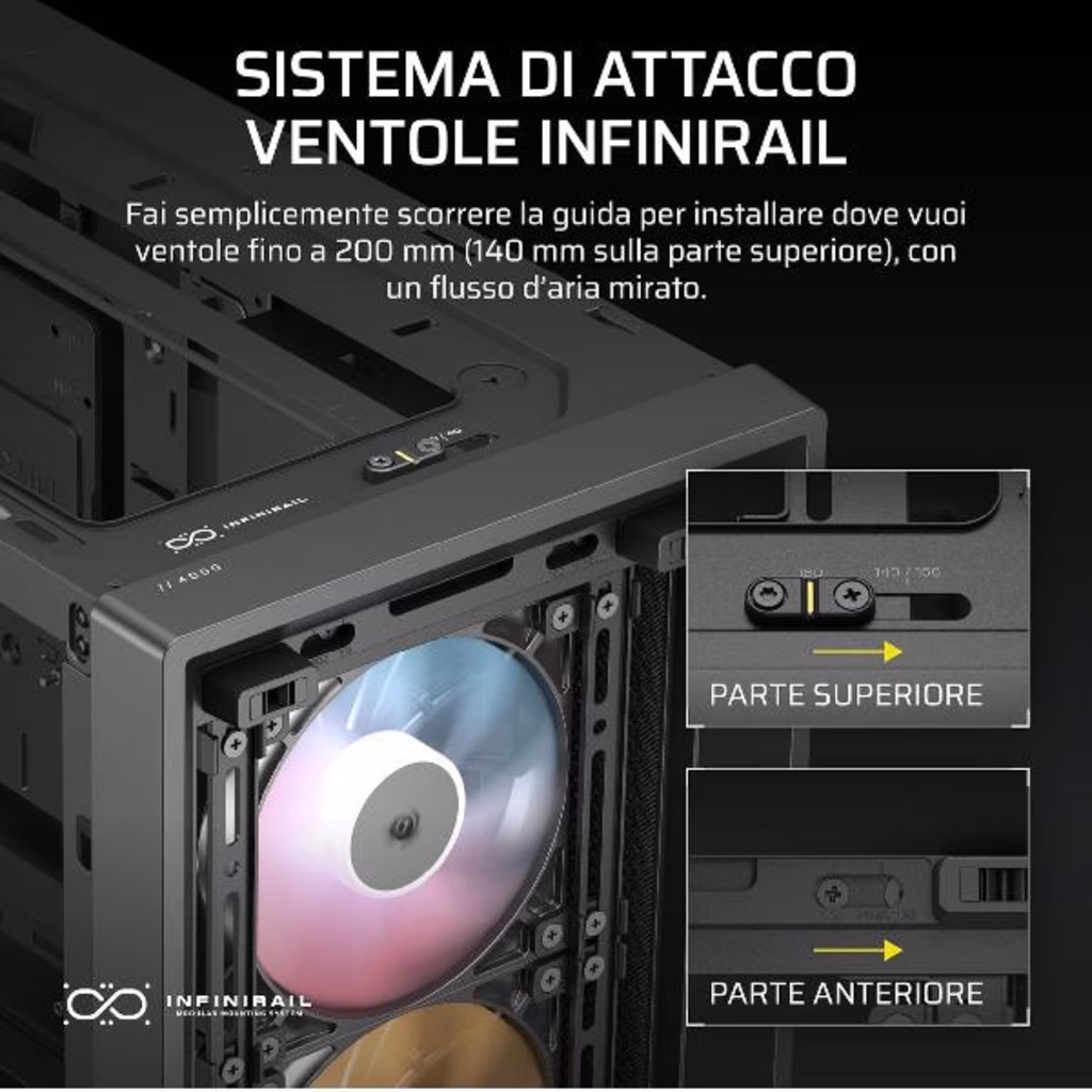 • Sistema di attacco ventole InfiniRail che facilita l assemblaggio.