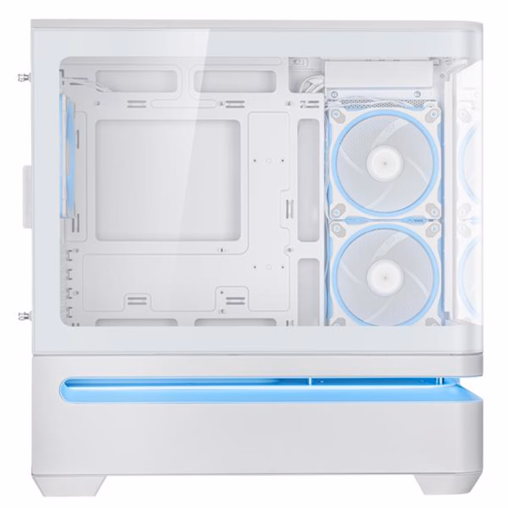 Il pannello in vetro temperato curvo si estende senza soluzione di continuità dalla parte anteriore a quella laterale, offrendo una vista panoramica dei componenti da quasi tutte le angolazioni