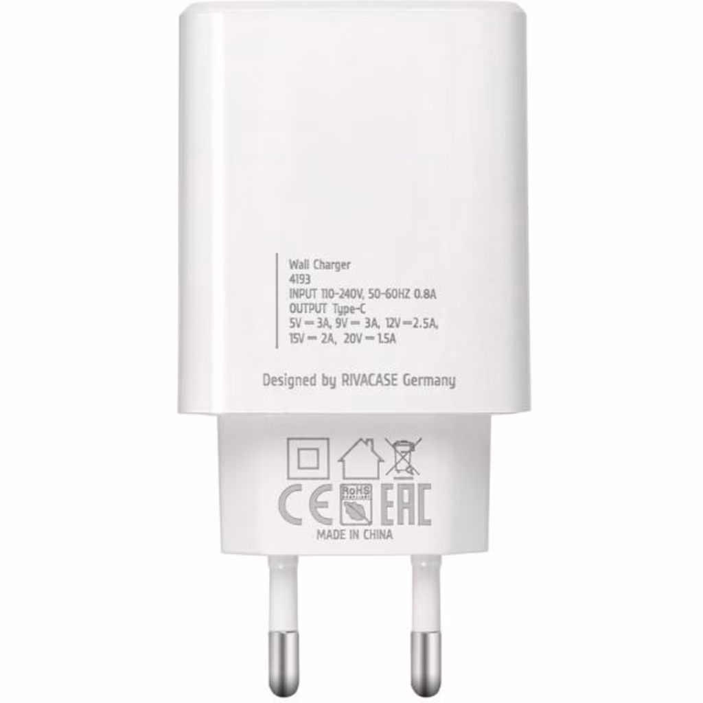 Caricabatterie Bianco RIVACASE Caricatore da Parete -30W PD USB C PS4193W00