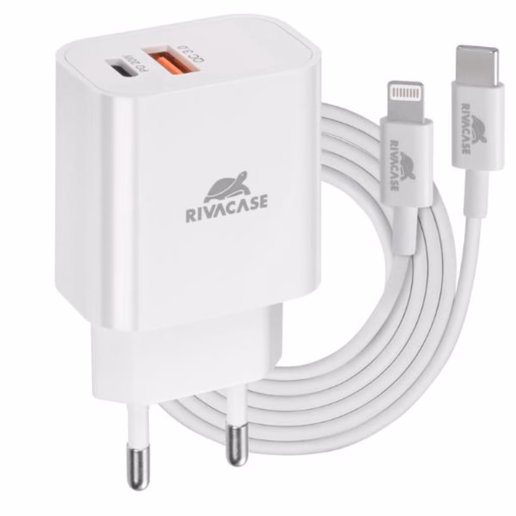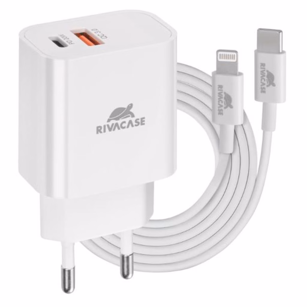 Caricabatterie Bianco RIVACASE Wall charger white PD 20W + QC3.0, USB + USB-C, PS4102WD5EU