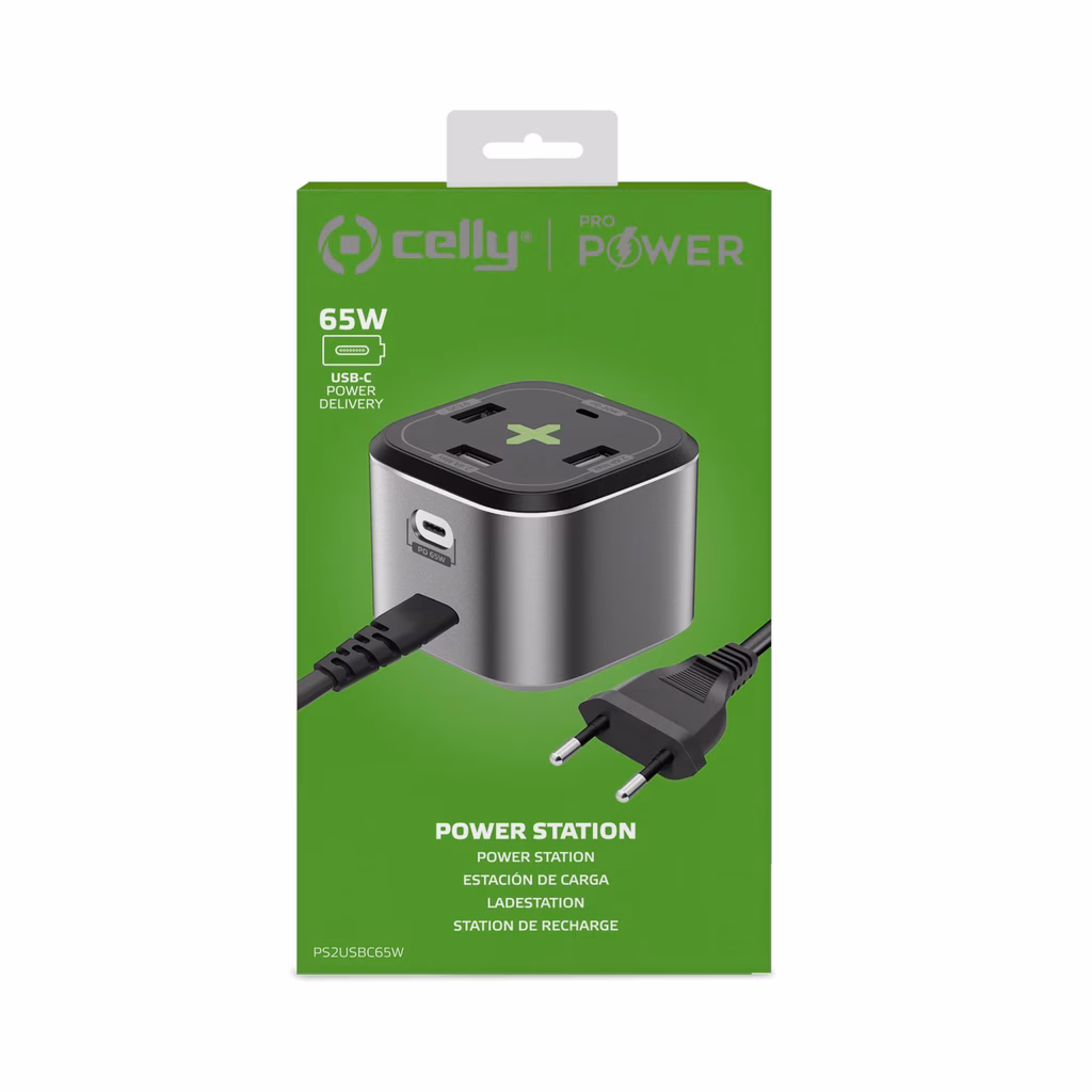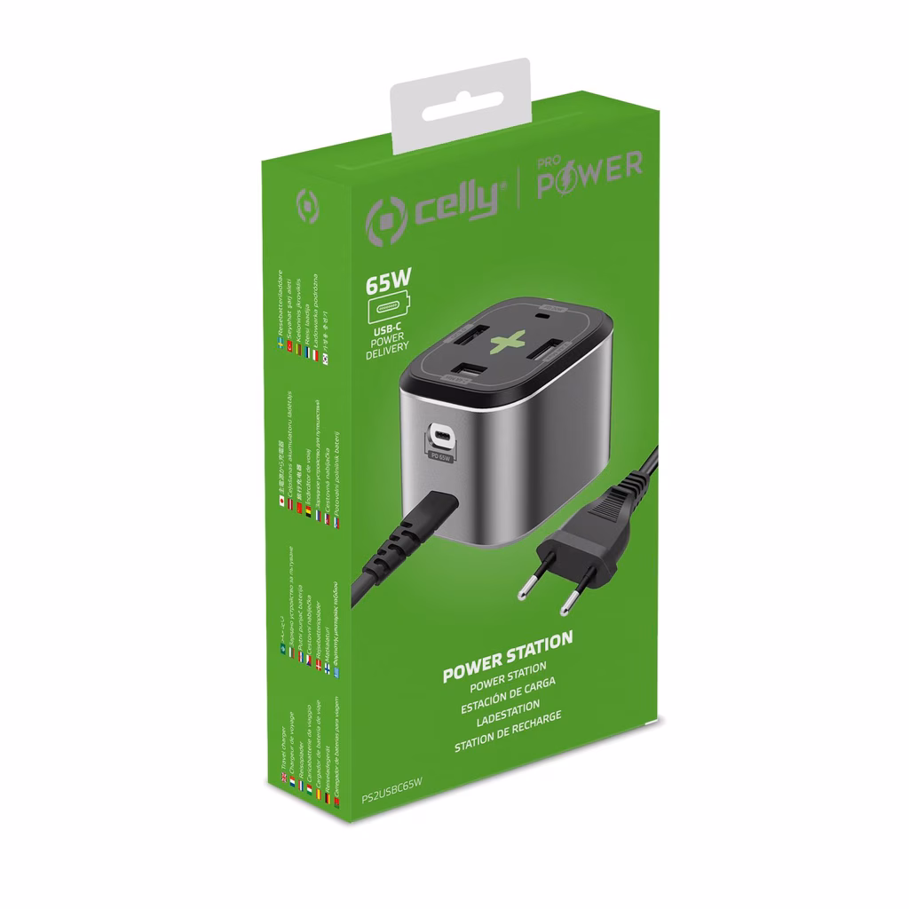 Caricabatterie nero CELLY PS2USBC65W - 65W Power Station PRO POWER PS2USBC65W