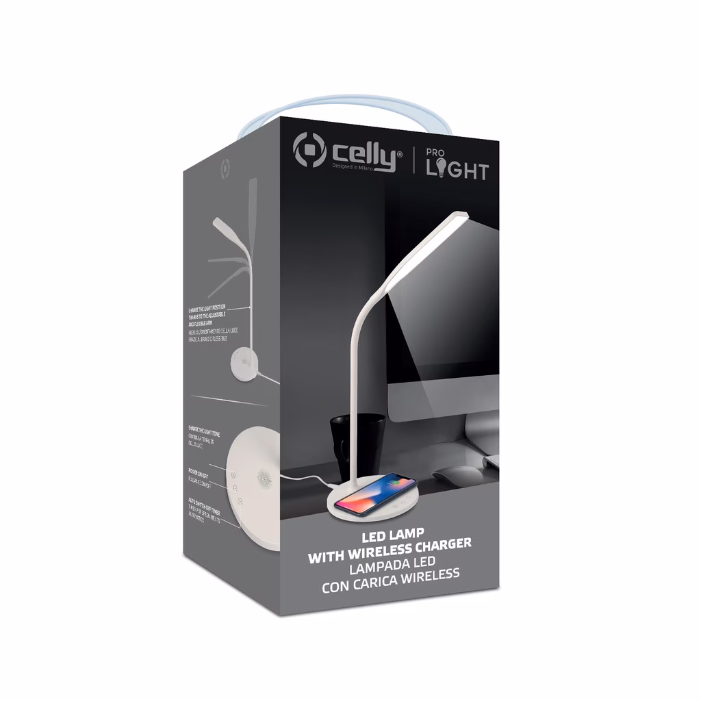 Caricabatterie wireless/senza fili Bianco microusb CELLY WLLIGHT10W - 10W Led Lamp with Wireless Cha