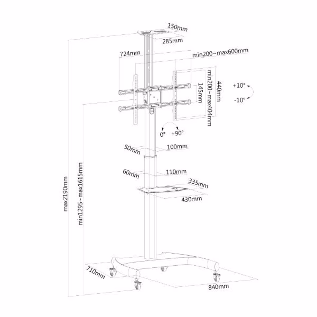 Il supporto a pavimento NewStar, modello PLASMA-M1900E è un mobiletto portatile per schermi LCD/LED/Plasma fino a 70" (178 cm) con altezza regolabile da 130 a 162 cm.