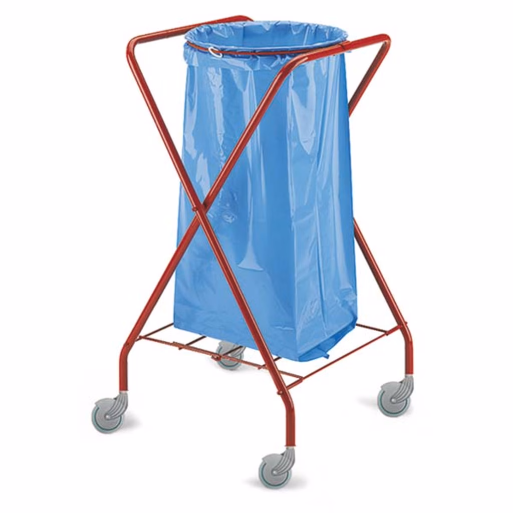 Carrello tondo in acciaio verniciato pieghevole completo di base, ruote ed elastico fermasacco - utilizzato per la raccolta dei rifiuti - per sacchi fino a 120 litri