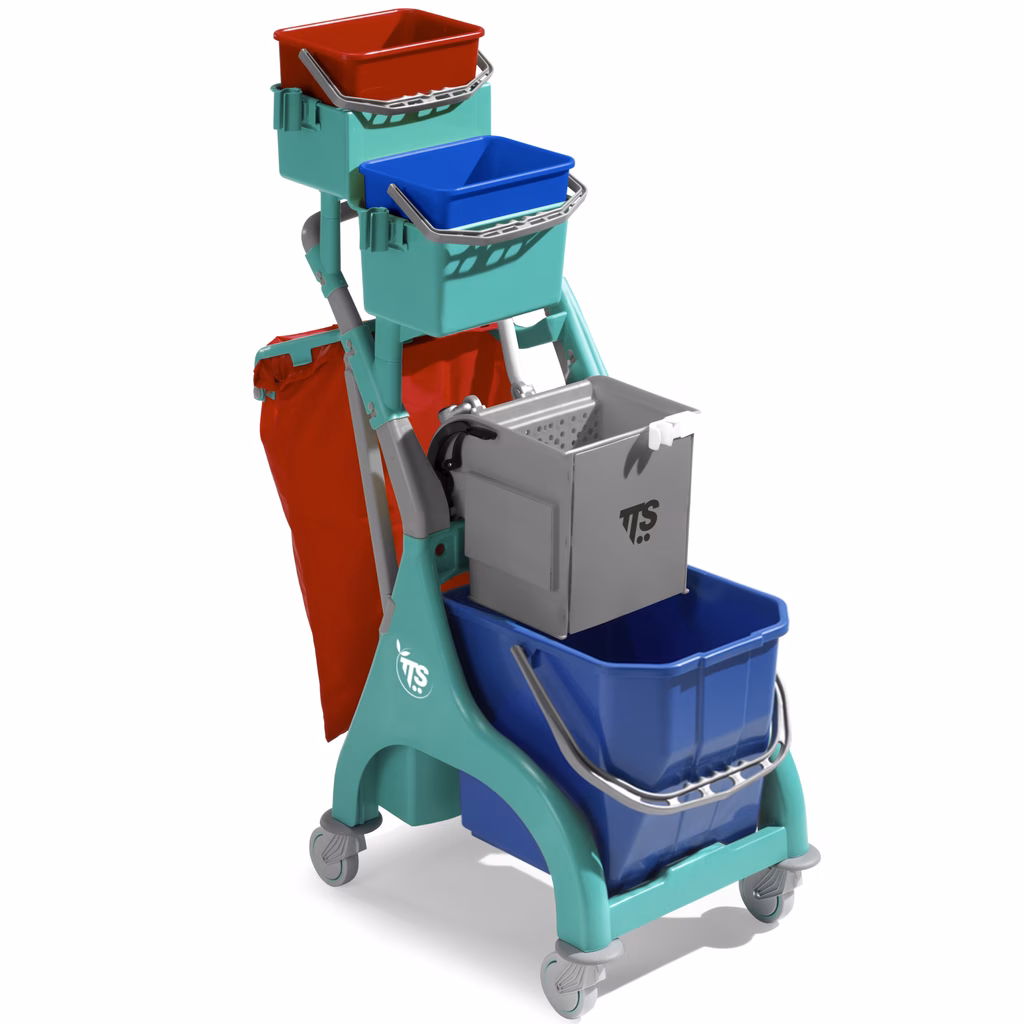 Carrello TTS con secchio lavaggio 28 litri con divisorio secchi e portasacco