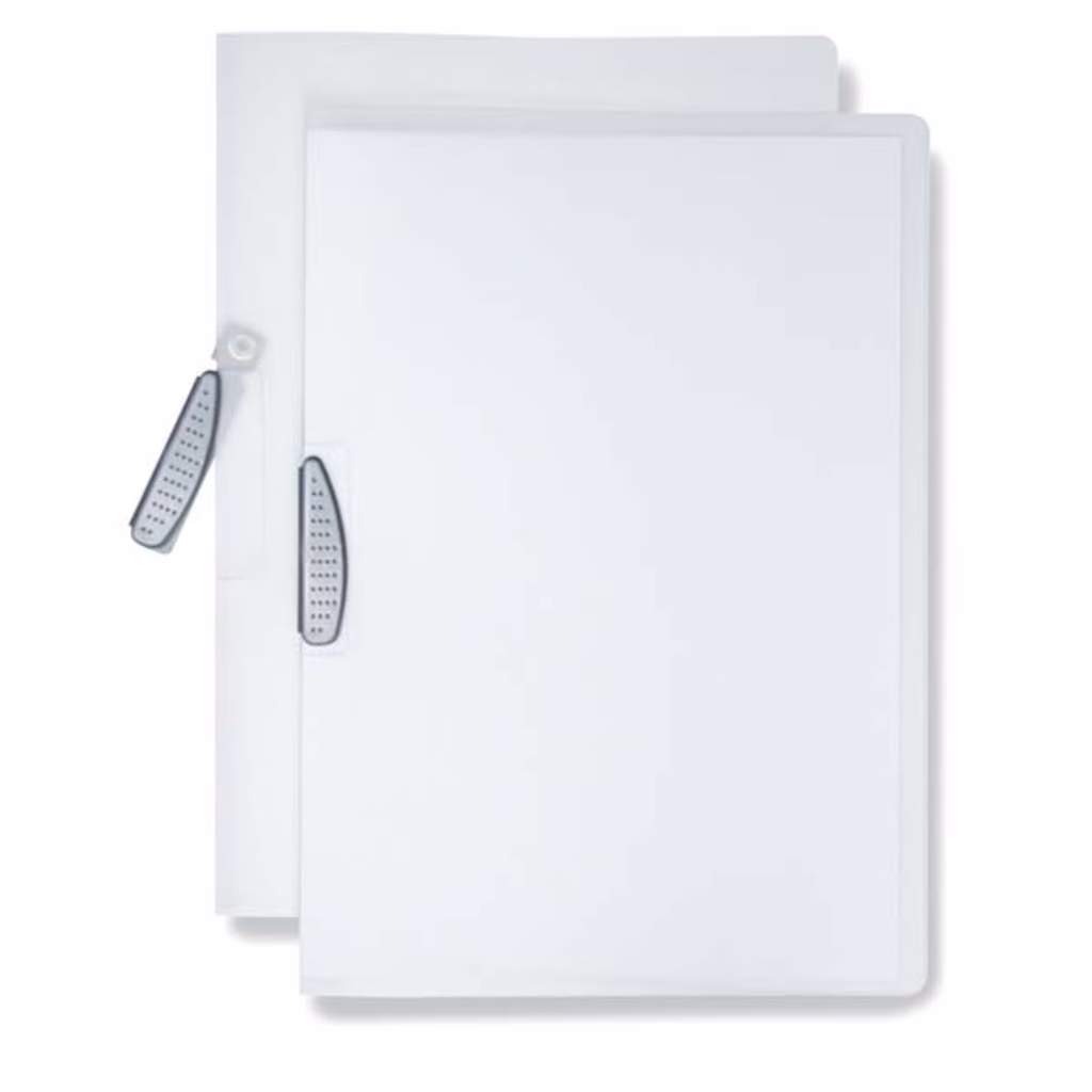 Cartellina trasparente a buccia d'arancia - chiusura ad alta tenuta con clip girevole ad incastro in plastica rigida