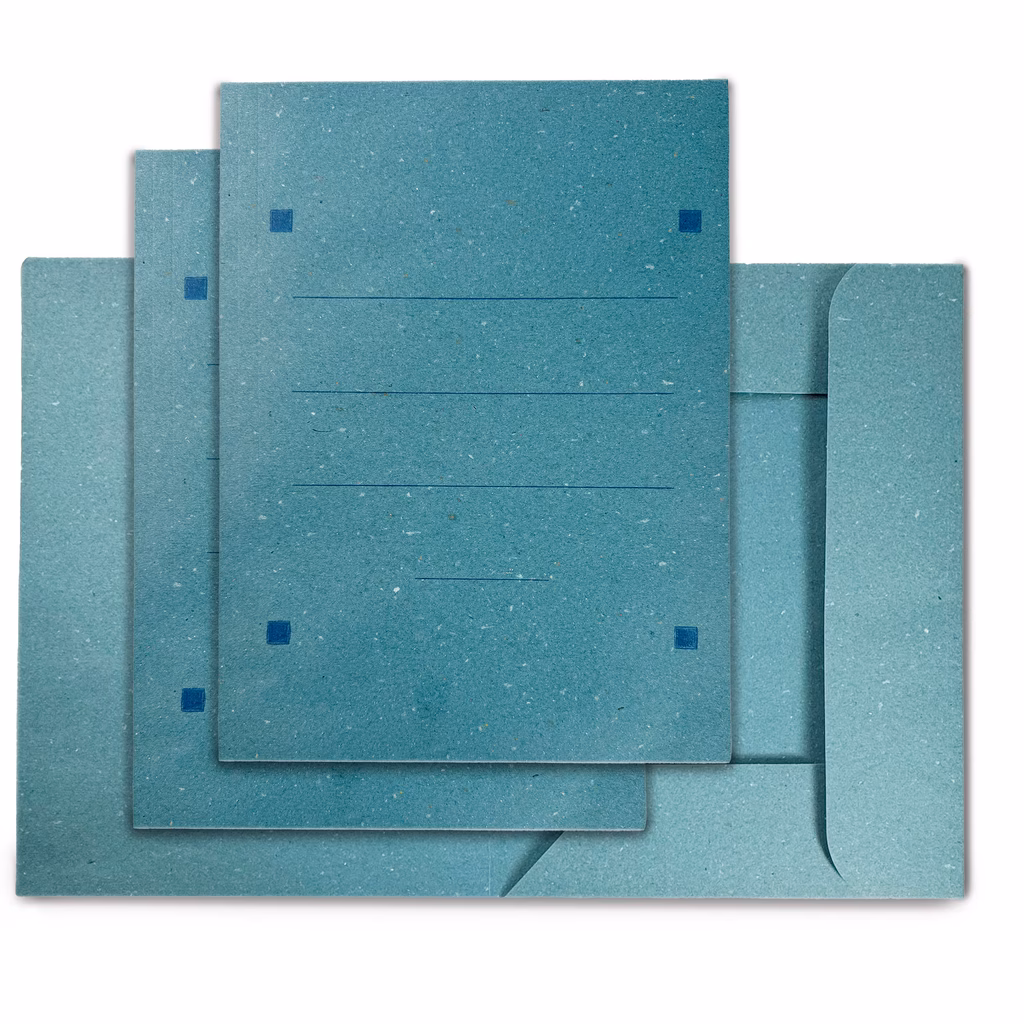 Cartellina a tre lembi in cartoncino 100% riciclato con griglia stampata sulla copertina (certificato FSC)