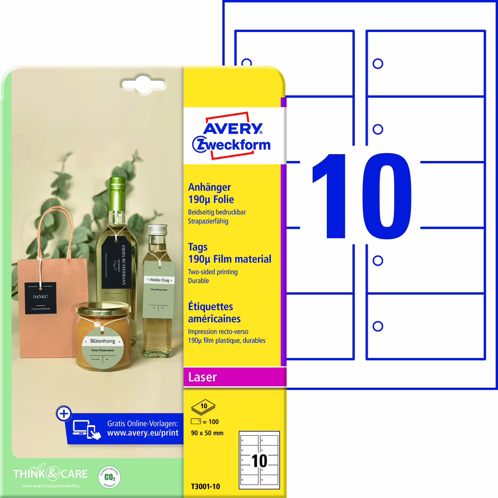 Catturano immediatamente l'attenzione e offrono lo spazio necessario per fornire tutte le informazioni utili. Perfetti per l'identificazione di cosmetici, bevande e alimenti e oggetti che vengono esposti all'esterno o che devono resistere a condizioni difficili. Realizzati in plastica da 190 ultraresistente. Sono impermeabili, resistenti agli strappi, agli agenti chimici e ai raggi UV. Ideali anche per uso esterno. Cordoncino incluso. Tecnologia Quick&Clean che consente di separarli facilmente dal foglio e ottenere bordi perfettamente lisci. Semplici e veloci da stampare grazie al programma gratuito Crea e Stampa Online di Avery