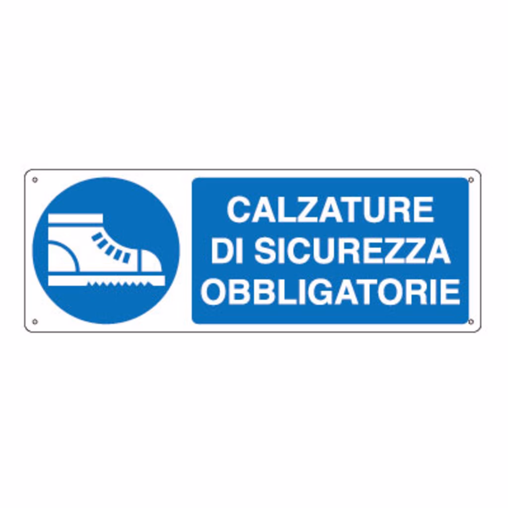 Cartello alluminio 35x12,5 - obbligo calzature sicur.