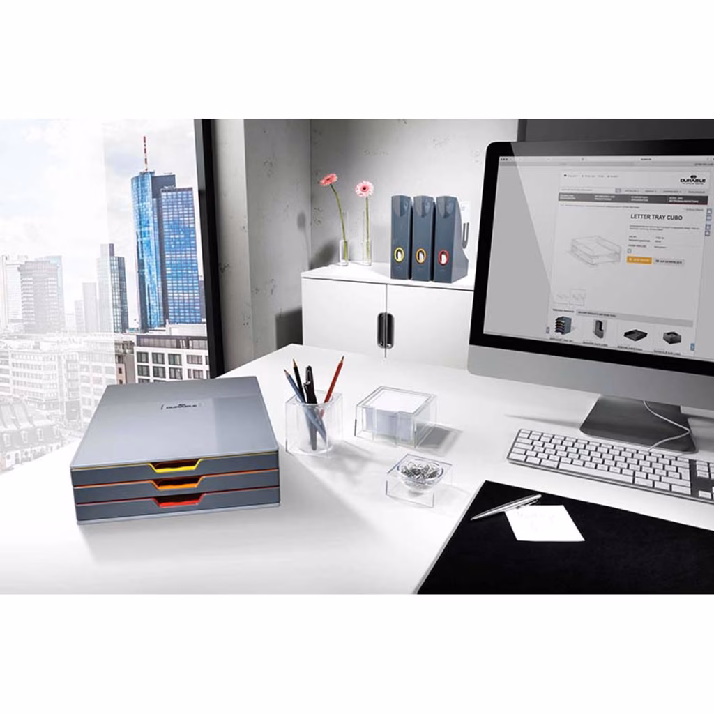 Cassettiere da scrivania dal design ricercato e moderno realizzate con materiali di alta qualità, robusti e performanti: ideali per riporre documenti fino a 24x32 cm. Dotate di cassetti con interno e profilo colorato che facilitano la classificazione dei documenti: scorrono inoltre in modo silenzioso e sono dotati di fermo corsa. Ogni cassetto è fornito di porta etichetta rimovibile e di inserti in cartoncino personalizzabili. Le cassettiere possono essere impilate e affiancate rimanendo perfettamente stabili grazie ai piedini antiscivolo di cui sono dotate.